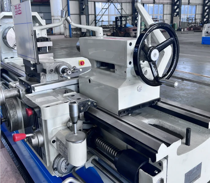This series lathe machine is suitable for internal and external turning, tapering, and other rotating faces, metric,module-and inch threads, as well as drilling and pull oil slot. Width of bed is bigger than normal lathe machine, with high hardness on guideway, the guideway is throughhigh-fre-quency quenching,wear-resisting. This machine is easy to operate, with rapid device for carriage, design with single hand wheel to operate. The strength and rigidity of machine is higher than normal lathe machine, high efficiency, suitable for heavy duty machining.