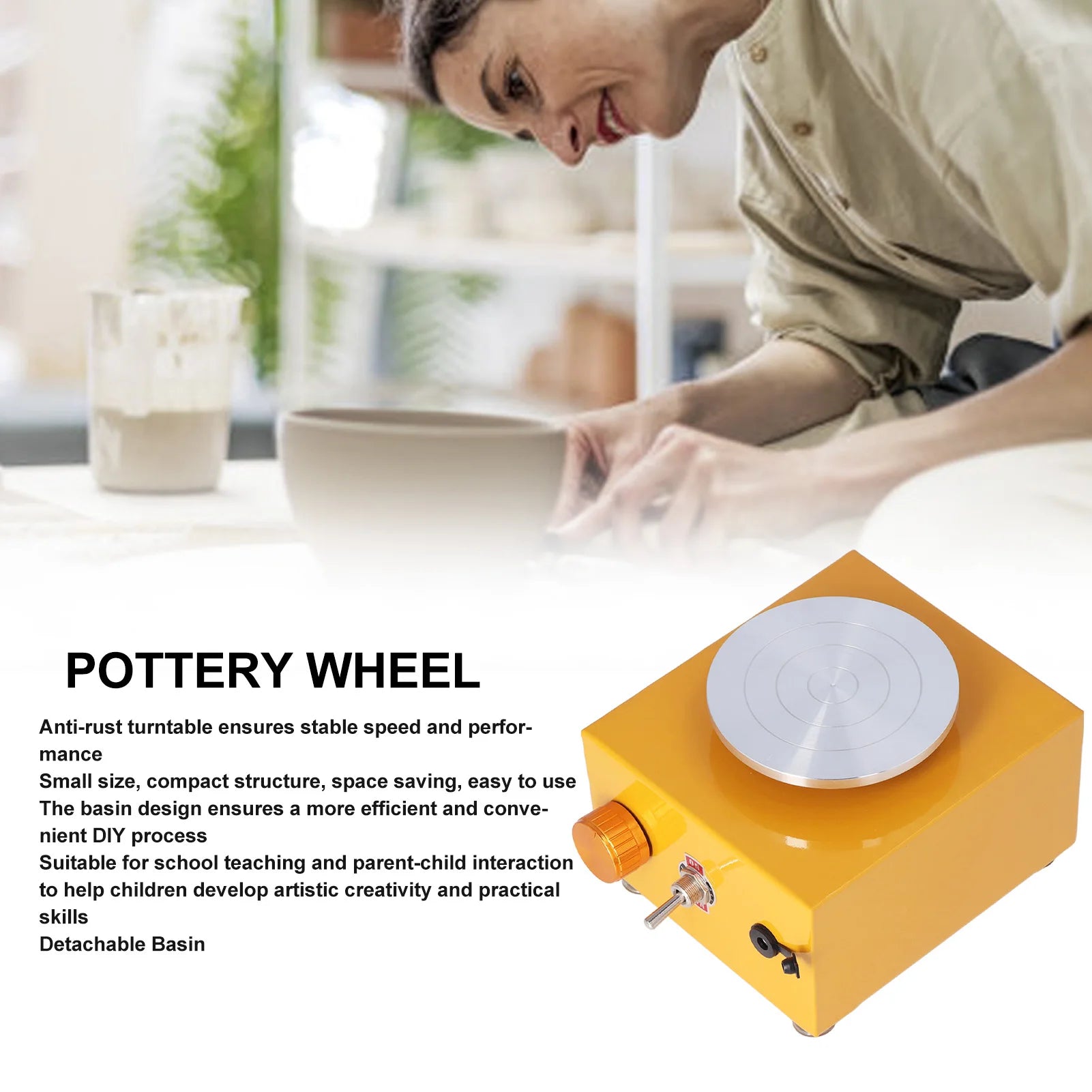 Mini Pottery Wheel Yellow Small Miniature School Teaching Pottery Wheel Machine for Art Craft Work Molding Gift 100‑240V