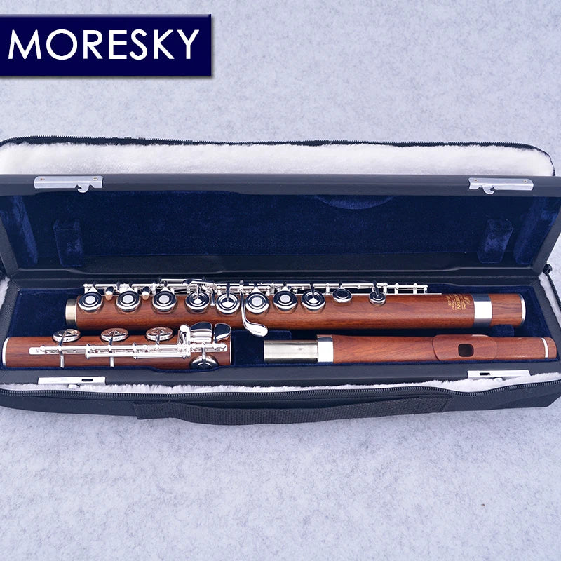MMOOKA MORESKY-Redwood Flute, 17 Open Hole, Silver Plated E Key, Rosewood Mopane, Professional MFL-202