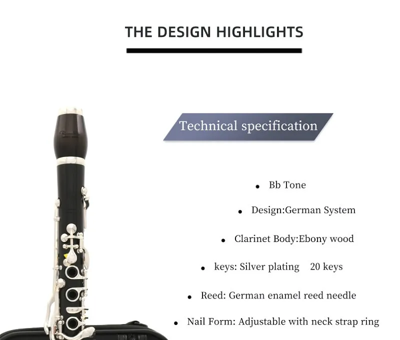 New Bb tone 20 keys Ebony wood clarinet German system design silver plating keys with case
