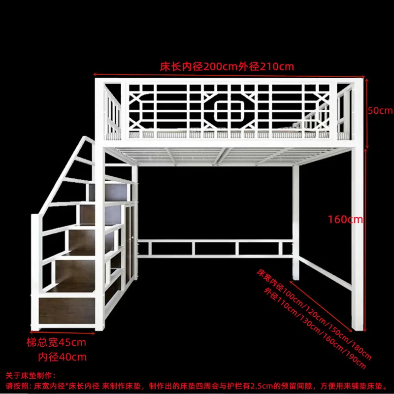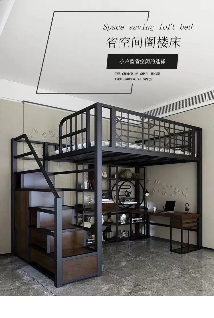 ANTNX New Chinese-style loft bed elevated sheet upper floor small apartment children's apartment iron frame ANTNX.COM