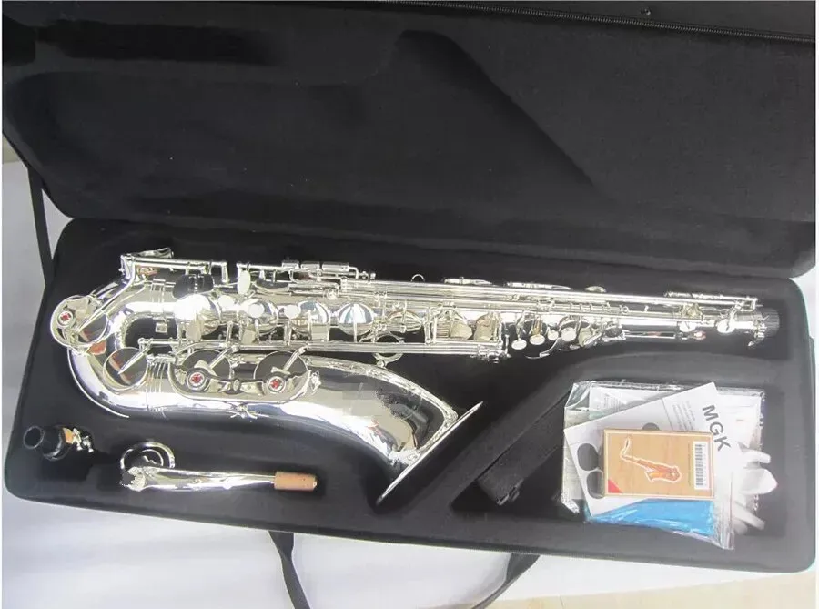 MMOOKA New Tenor Saxophone, Surface Silver Plated Bb Sax With Bakelite Mouthpiece&Case
