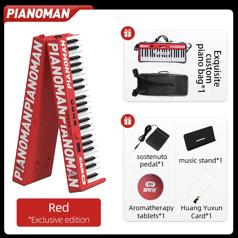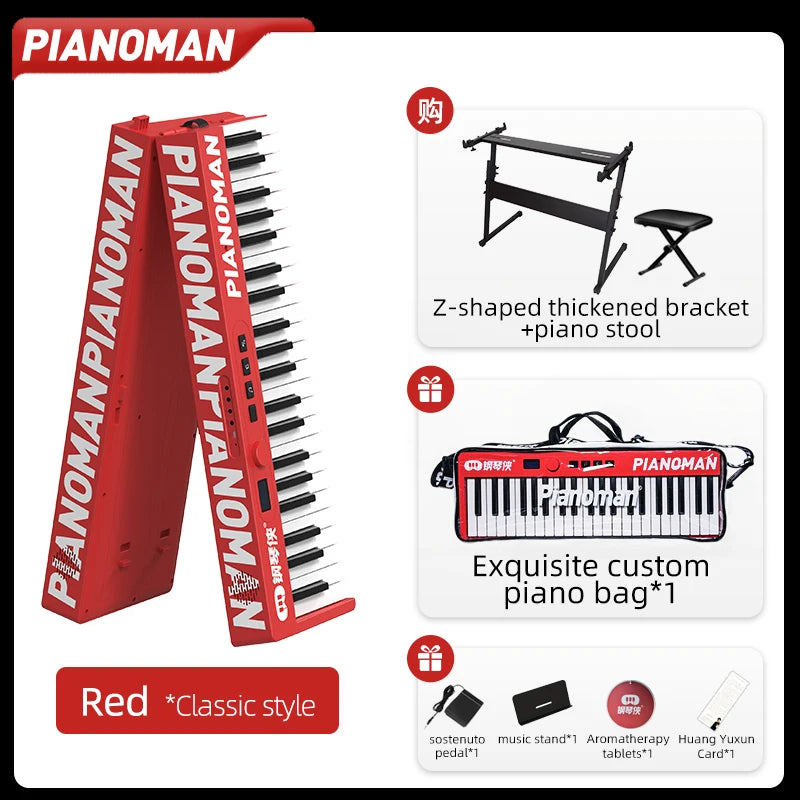 MMOOKA PIANOMAN 88 Keys Piano Keyboard Foldable Electronic Organ Adult piano 128 Preset Rhythms Music Toys Musical Instrument Red
