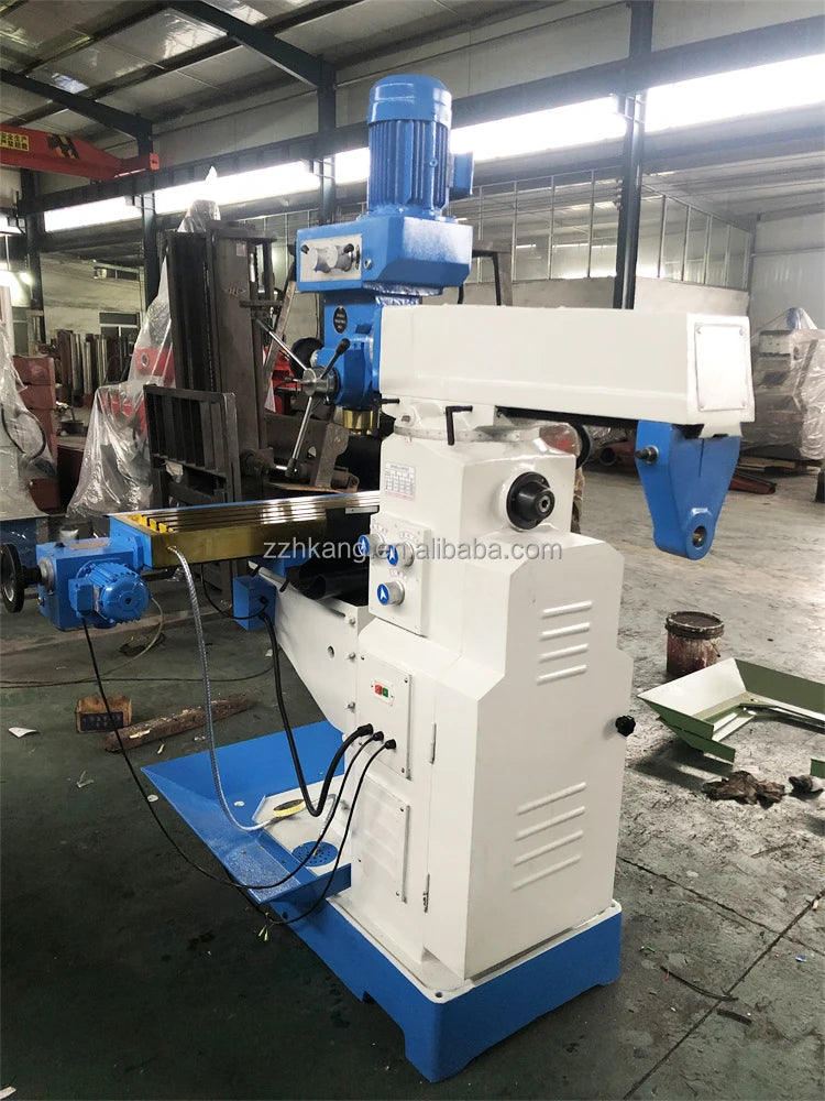ZX6350 drilling milling machine adopt copper core motor, head gear transmission, spindle manual can be micro-advanced, workbench automatic feeding, gear for grinding teeth through high-frequency quenching and tempering, low noise, durable, guide rail surface after heat treatment, high hardness, strong rigidity, beautiful appearance, uniform and coordinated overall layout, widely used in large, medium and small enterprises, township and individual industry machining, and all kinds of machine manufacturing in the processing of small and medium-sized parts.