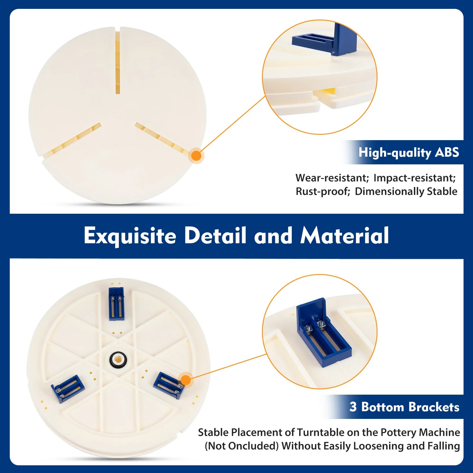 Bottom Bracket: 3 bottom brackets that are screwed to the back make the turntable stable to be placed on the pottery machine (not included) without easily loosening and falling off.