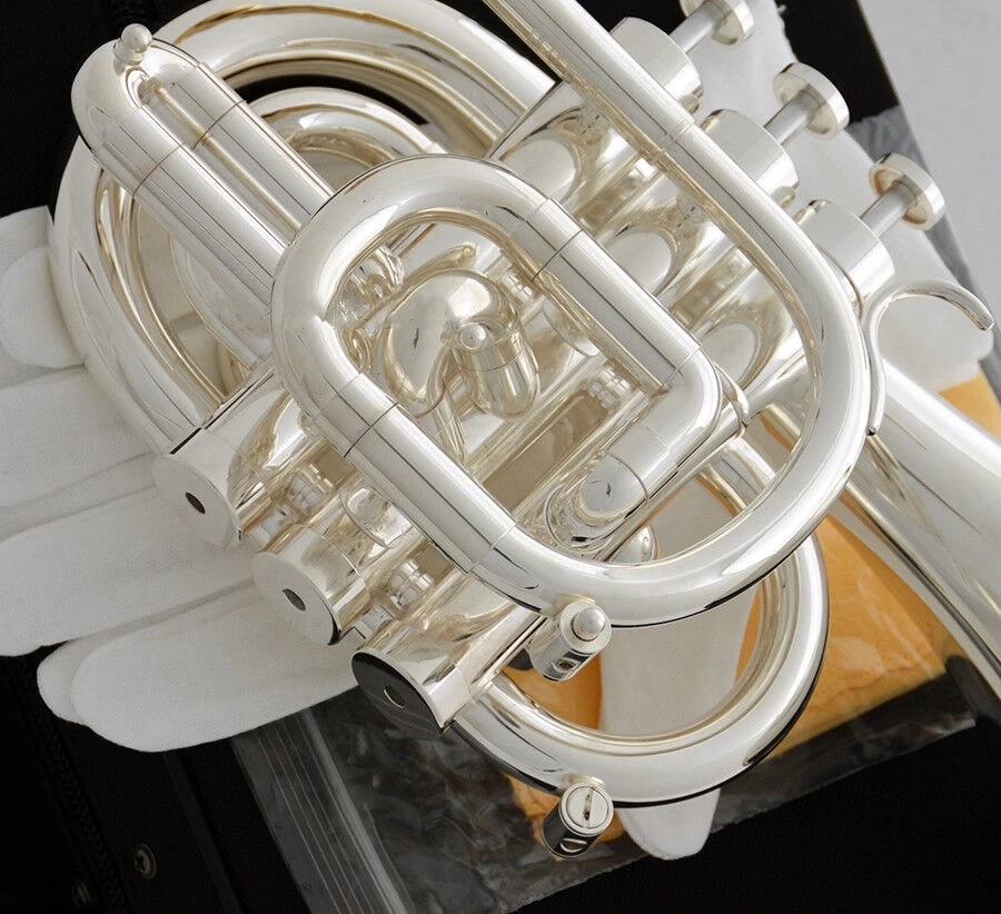 MMOOKA Professional Silver plated Pocket Trumpet Key of C Monel Valves 2 Mouth New Case
