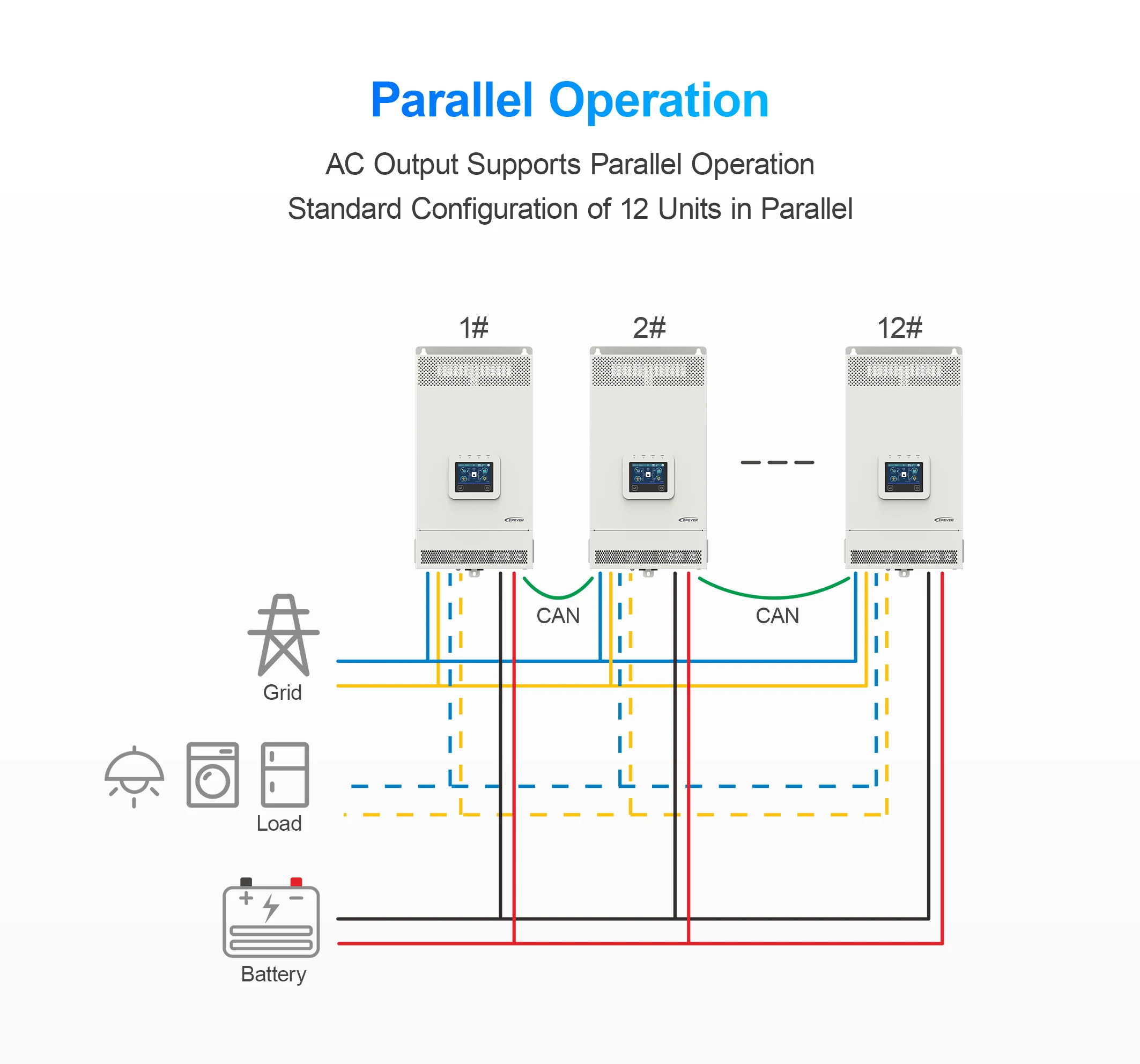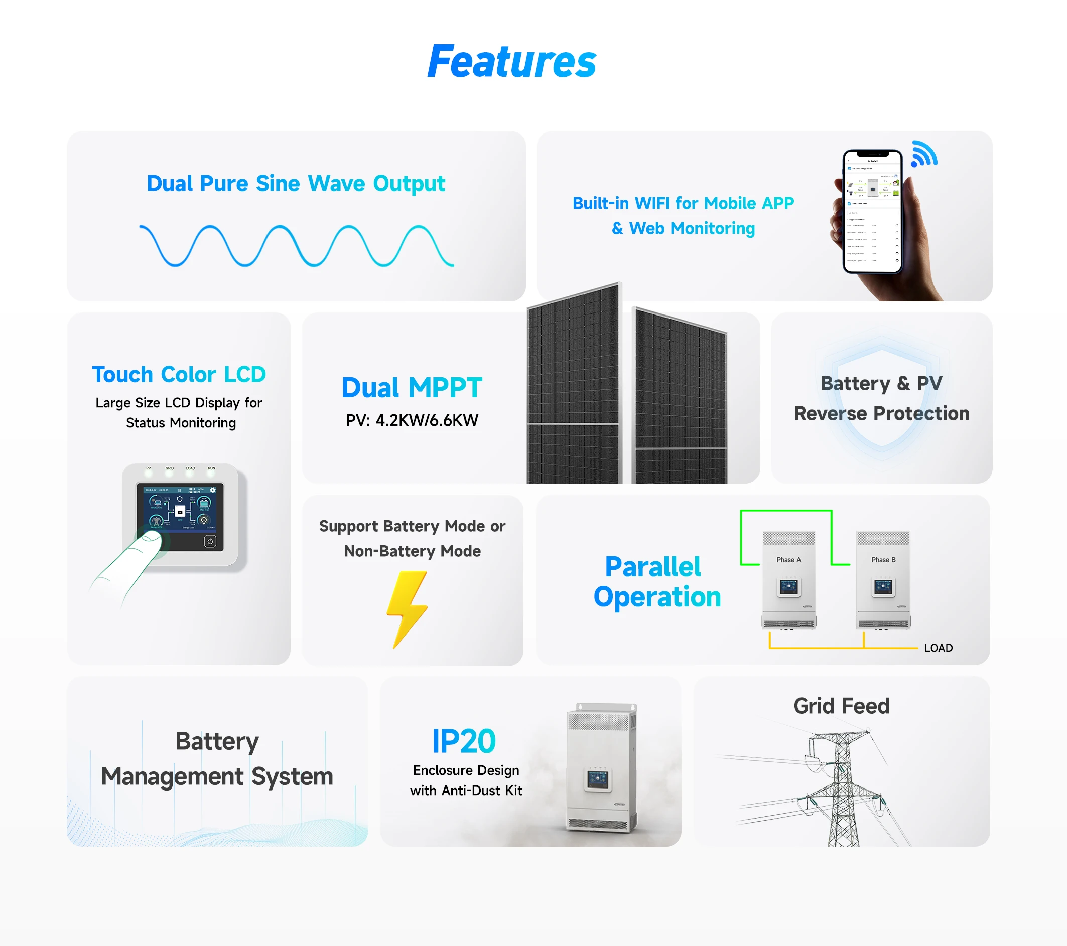 ANTNX Solar Power Inverter On Off Grid Hybrid Parallel Inverter Dual Pure Sine Wave Output 3.5KW 5.5KW For Home Appliance ANTNX.COM