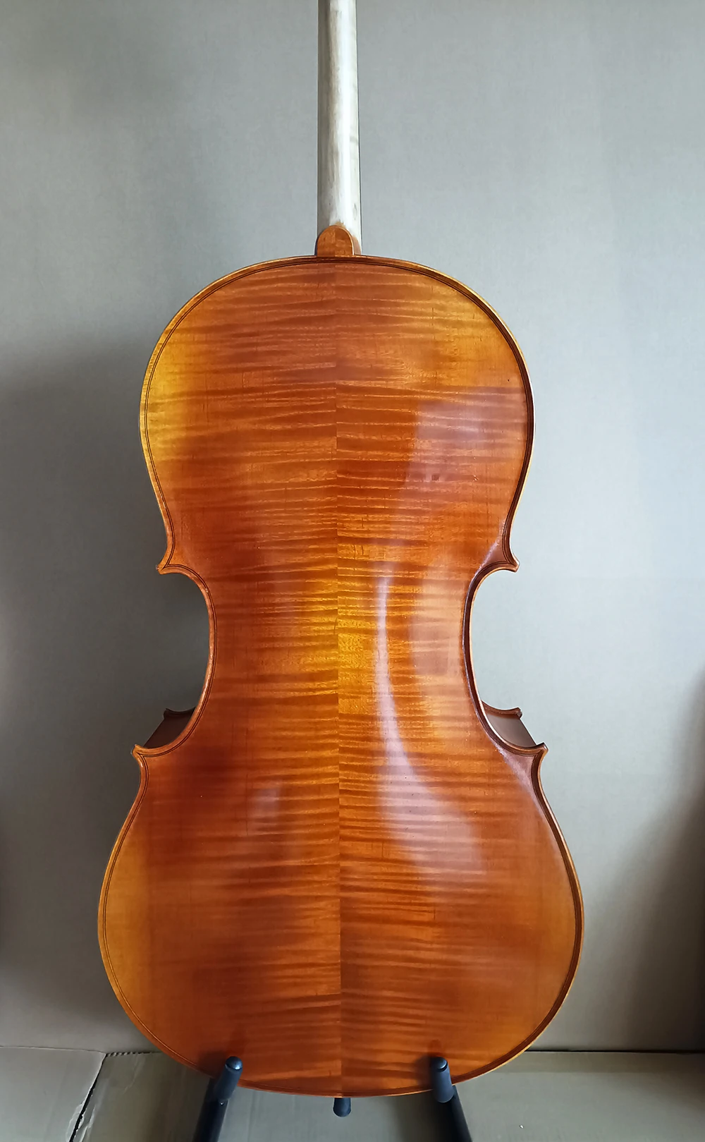 MMOOKA superior quality solid wood handmade cello 4/4 7/8 Flame Maple back panel varnish cello stringed instrument professional cello