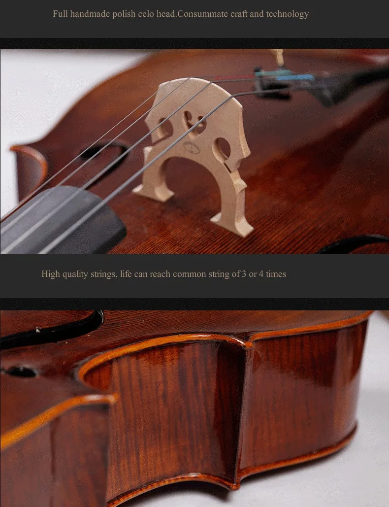 MMOOKA TONGLING Pure Handmade Matt Cello Natural Flamed Grade AAA Maple Backplate & Old Spruce Panel Cello for Performance & Collection