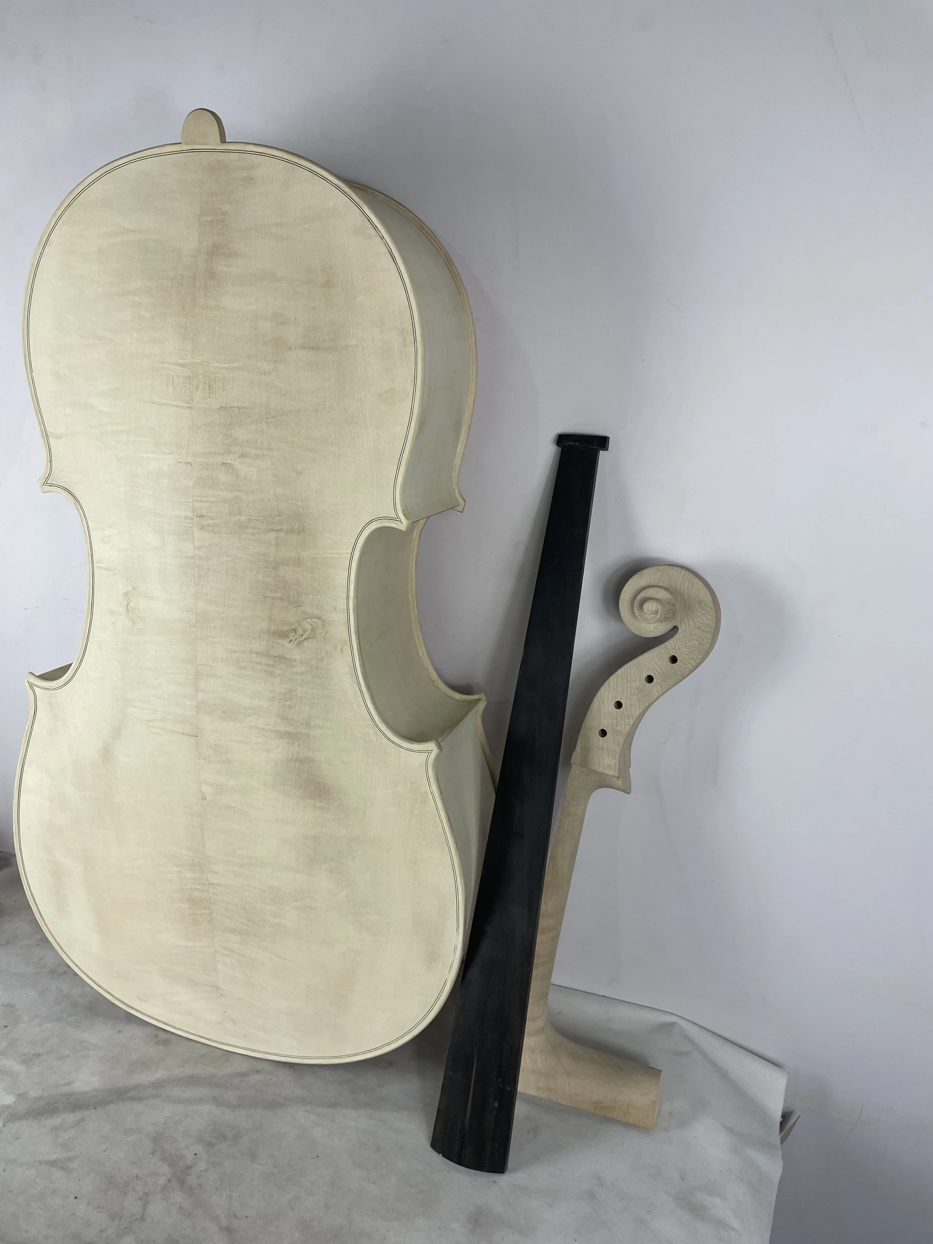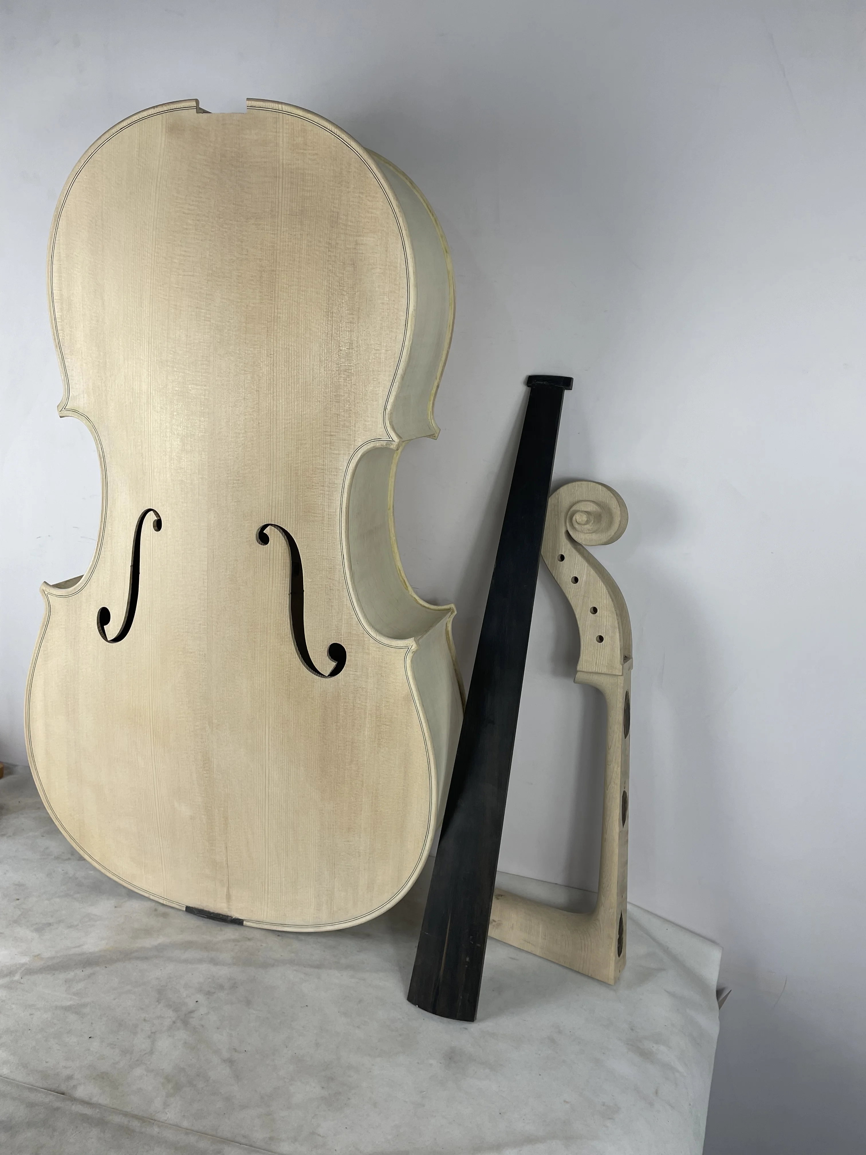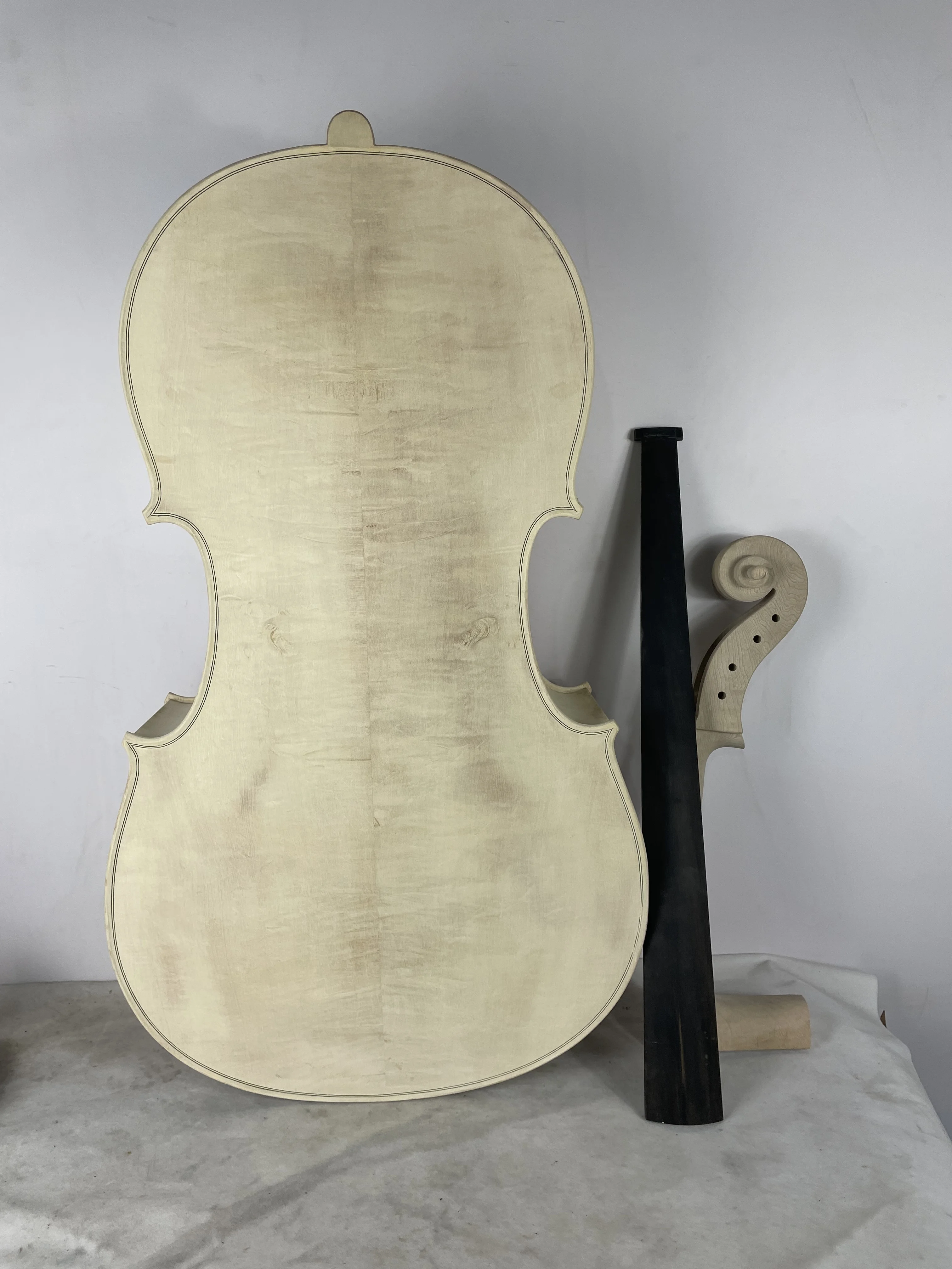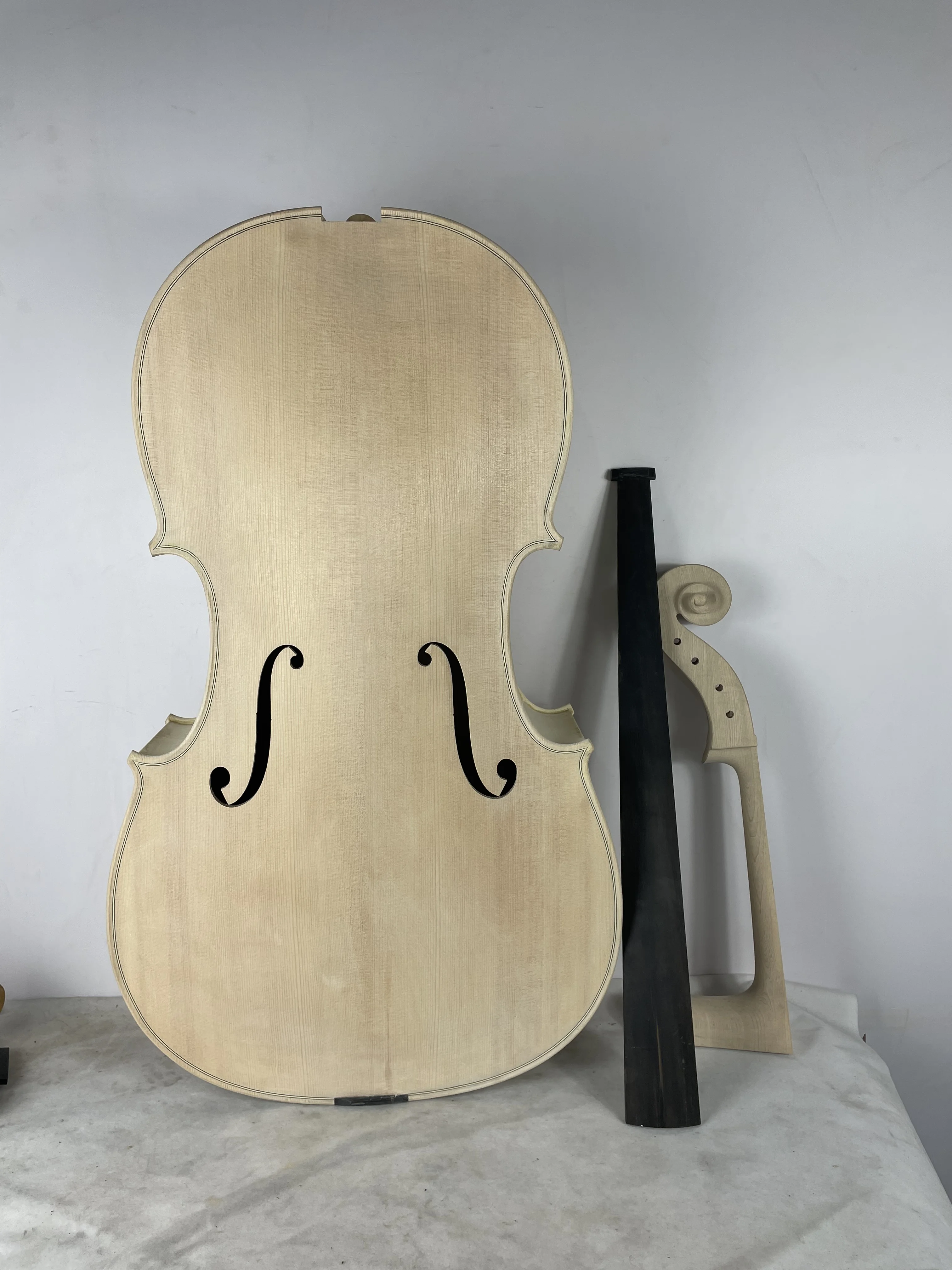 MMOOKA Unfinished Handmade Spruce Panel,Maple Back,Cello 1/4 -4/4,White Violoncello Embroidery,Professional Acoustic Musical Instrument