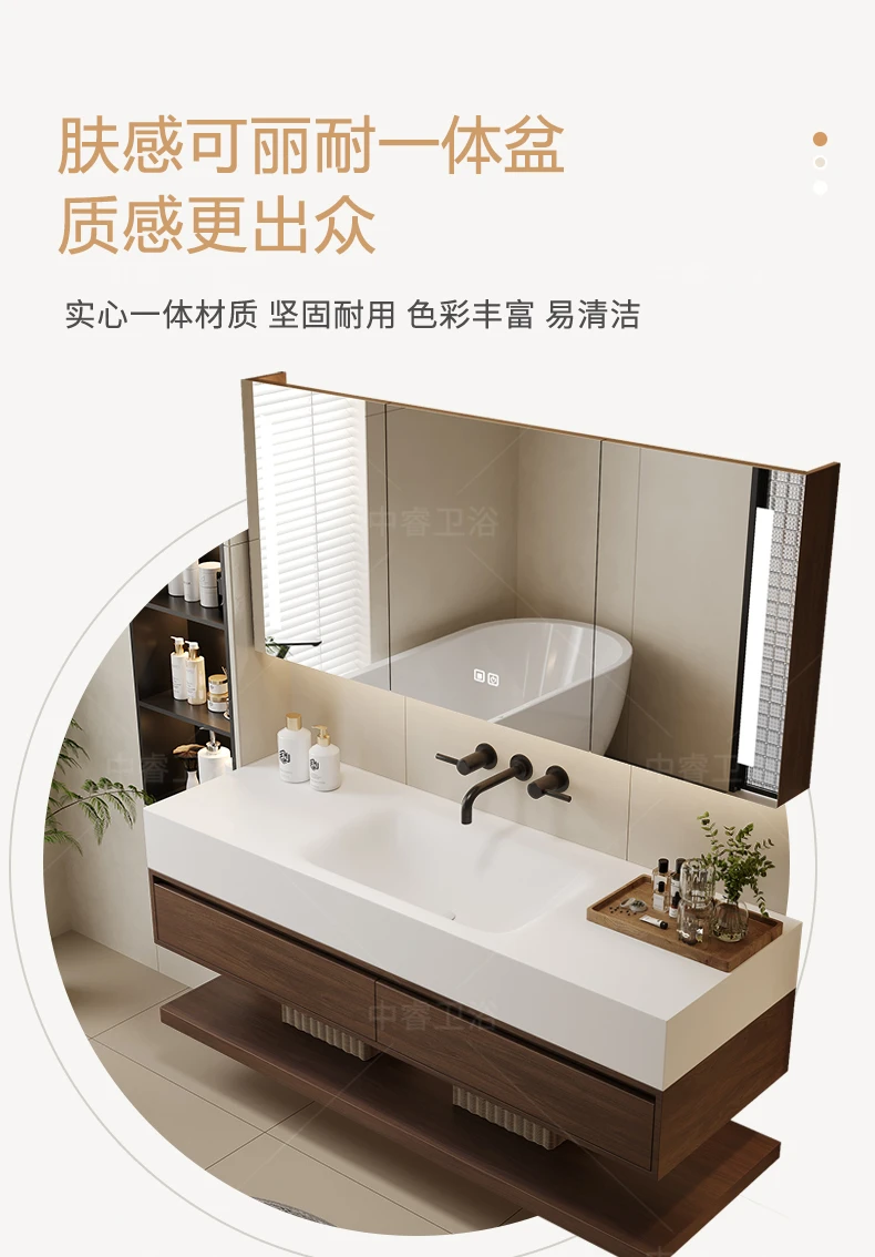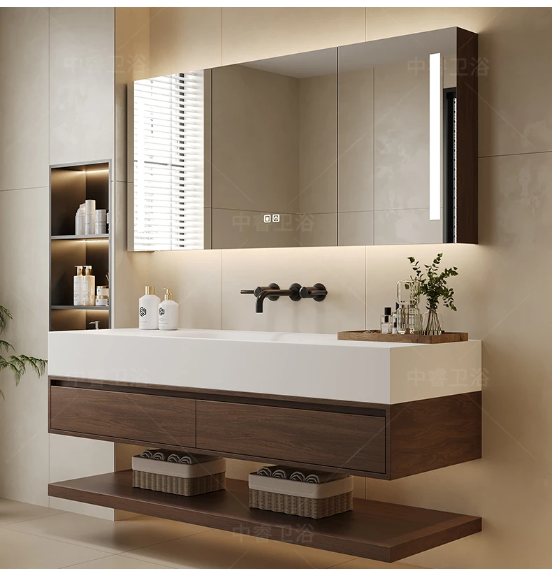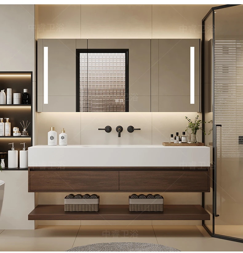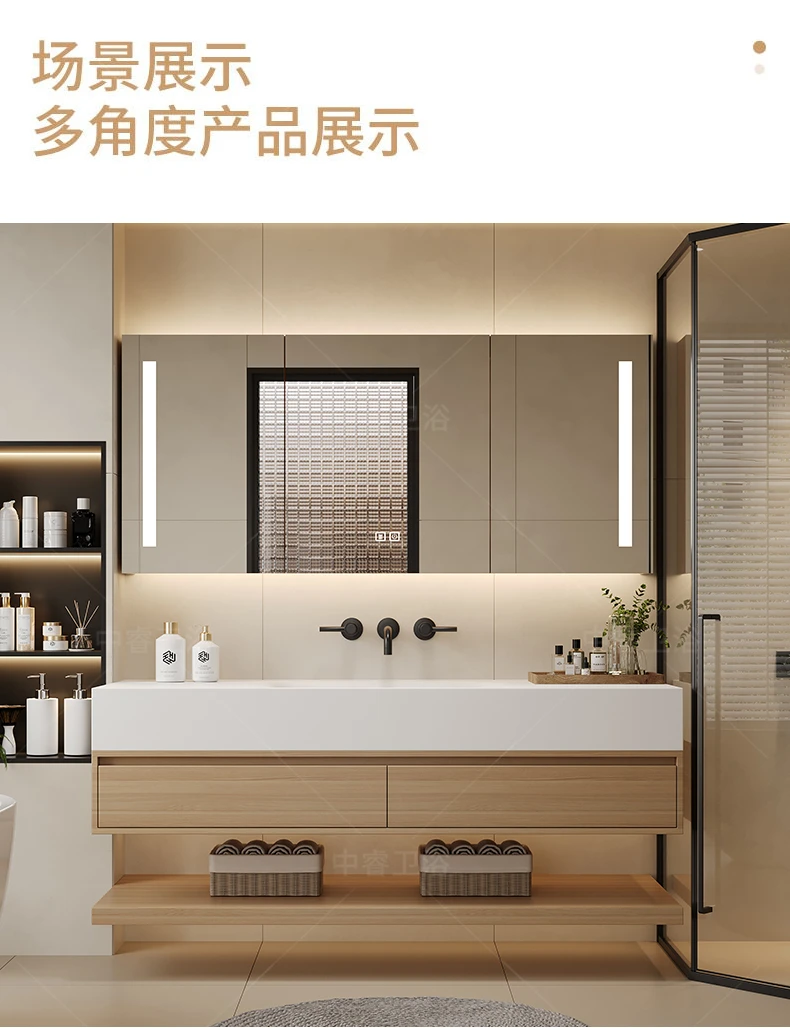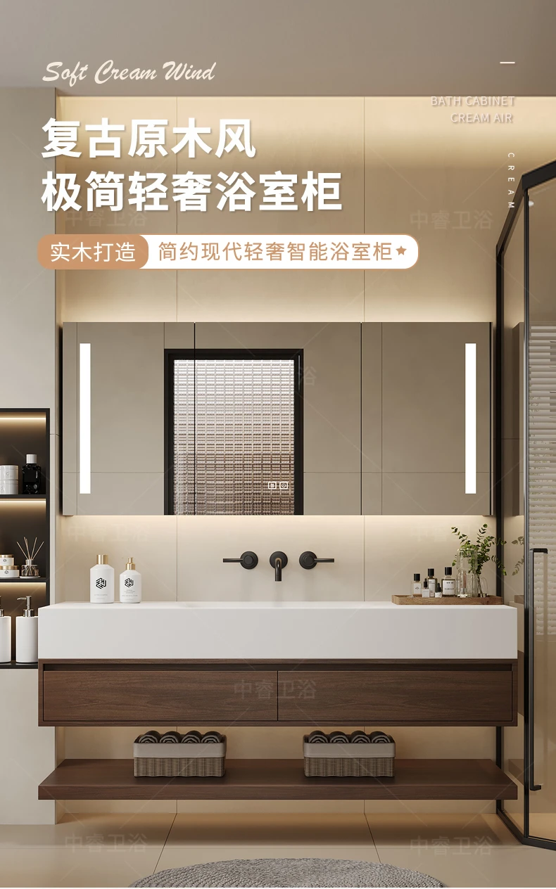 ANTNX Vintage Log Smart Mirror Cabinet Vanity with Sink Large Capacity Storage Bathroom Cabinet Simple Furniture Тумба С Ящиками FYBC ANTNX.COM