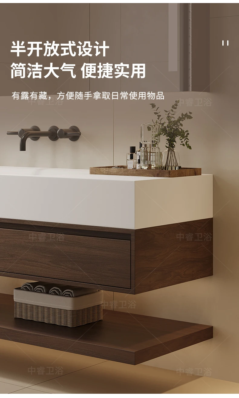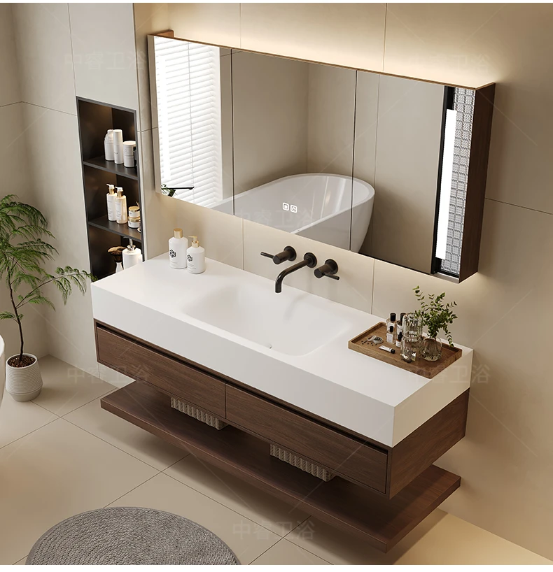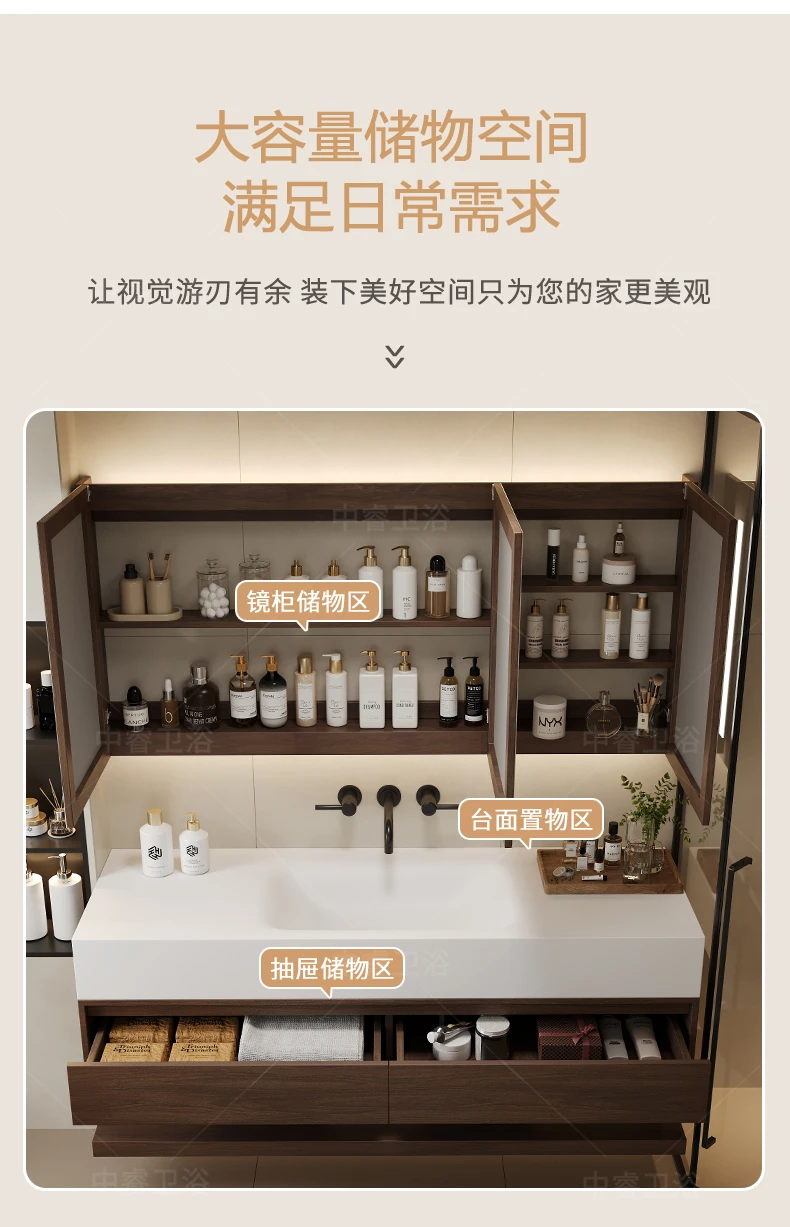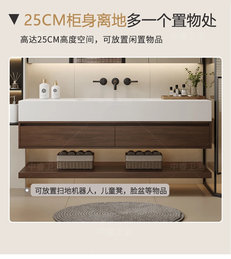 ANTNX Vintage Log Smart Mirror Cabinet Vanity with Sink Large Capacity Storage Bathroom Cabinet Simple Furniture Тумба С Ящиками FYBC ANTNX.COM