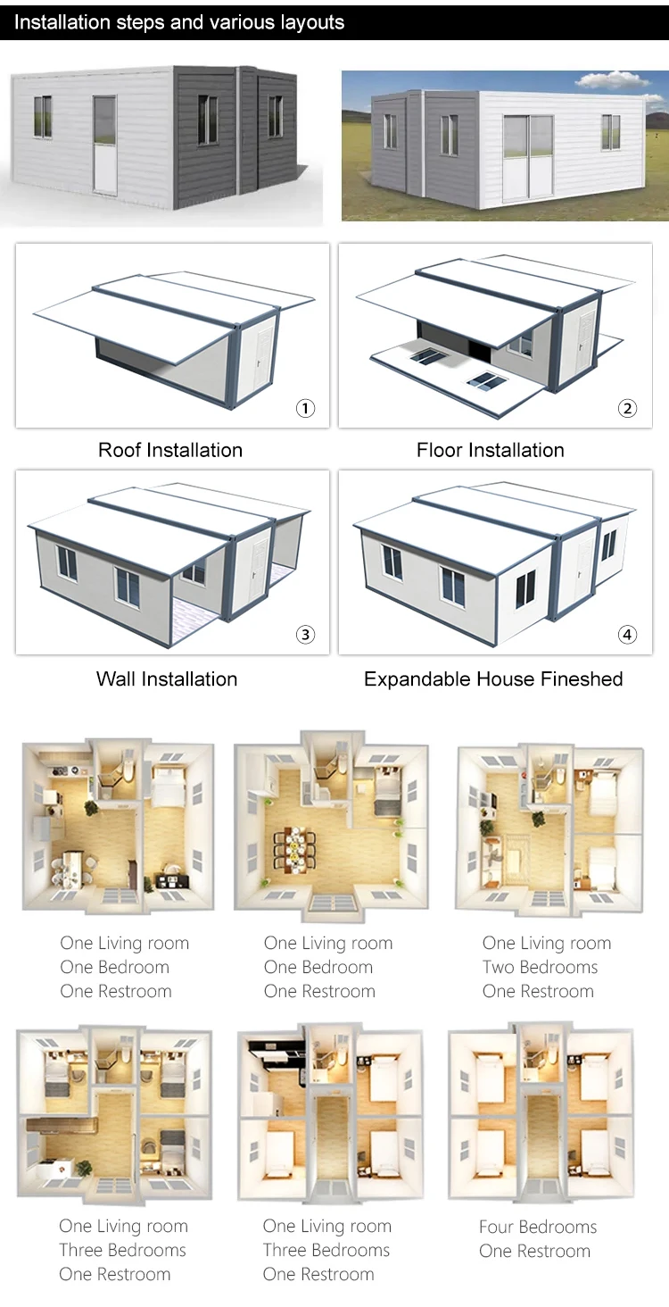 Expandable container house adopts a double-wing structure, looks like a bird spreading its wings, the best advantage is that the wings can be extended when it is necessary to expand, creating greater comfort and freedom in daily life.
