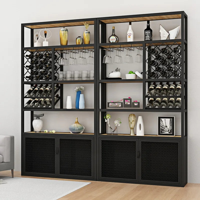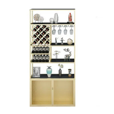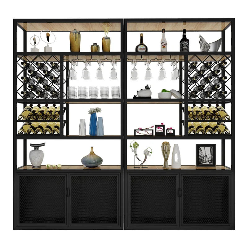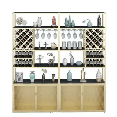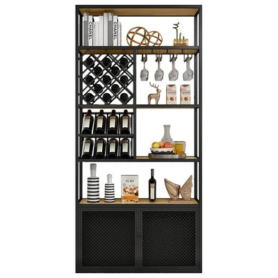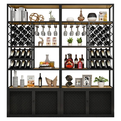 Modern and minimalist floor to floor iron solid wood wine cabinet with display rack, light luxury bar counter, bar red