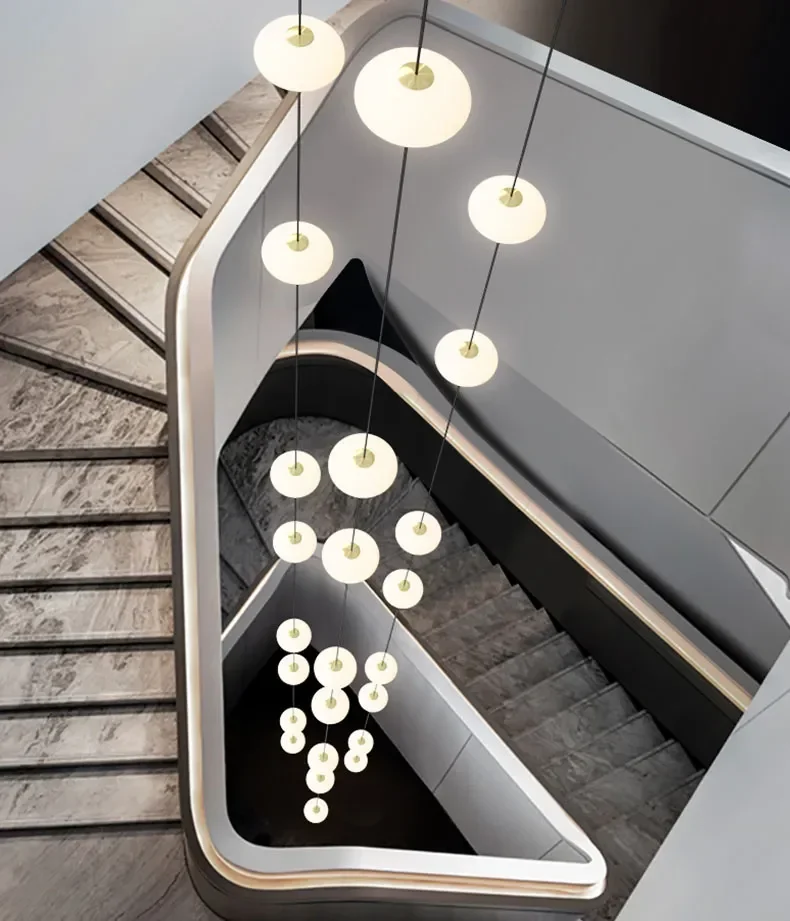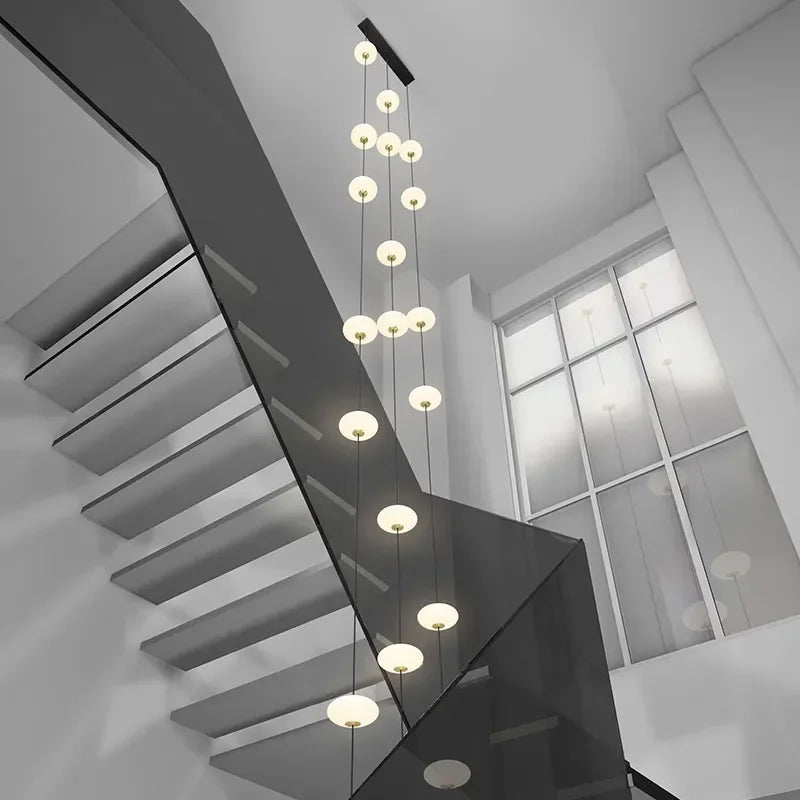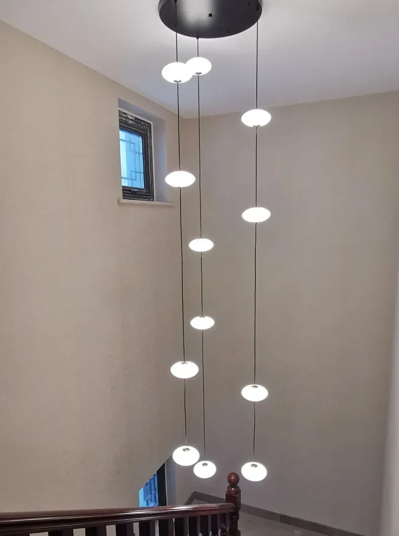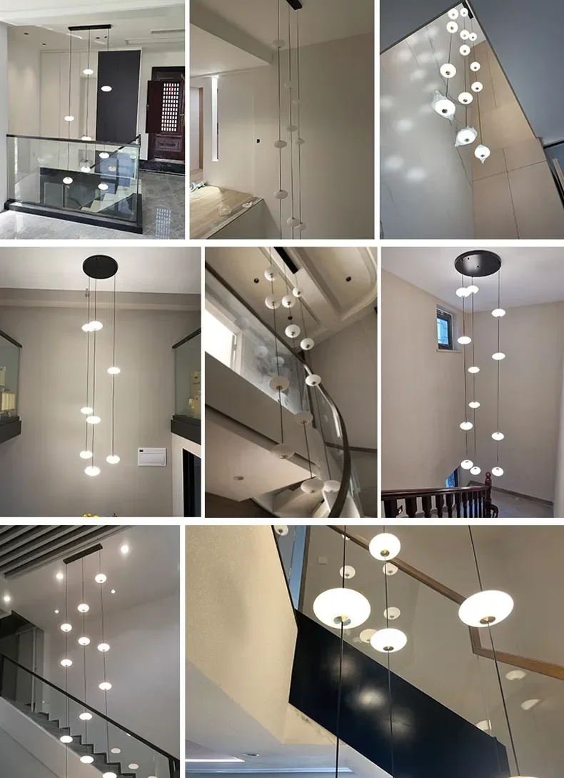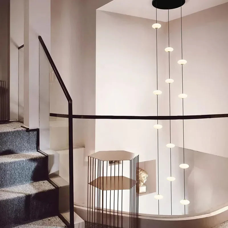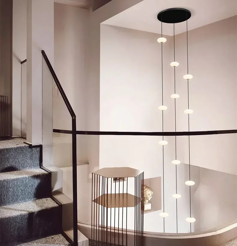 Modern Art Villa Stairwell Hollow LED Chandelier Minimalist Black Round Stair Hanging Lamps Indoor Home Long Lighting Fixtures