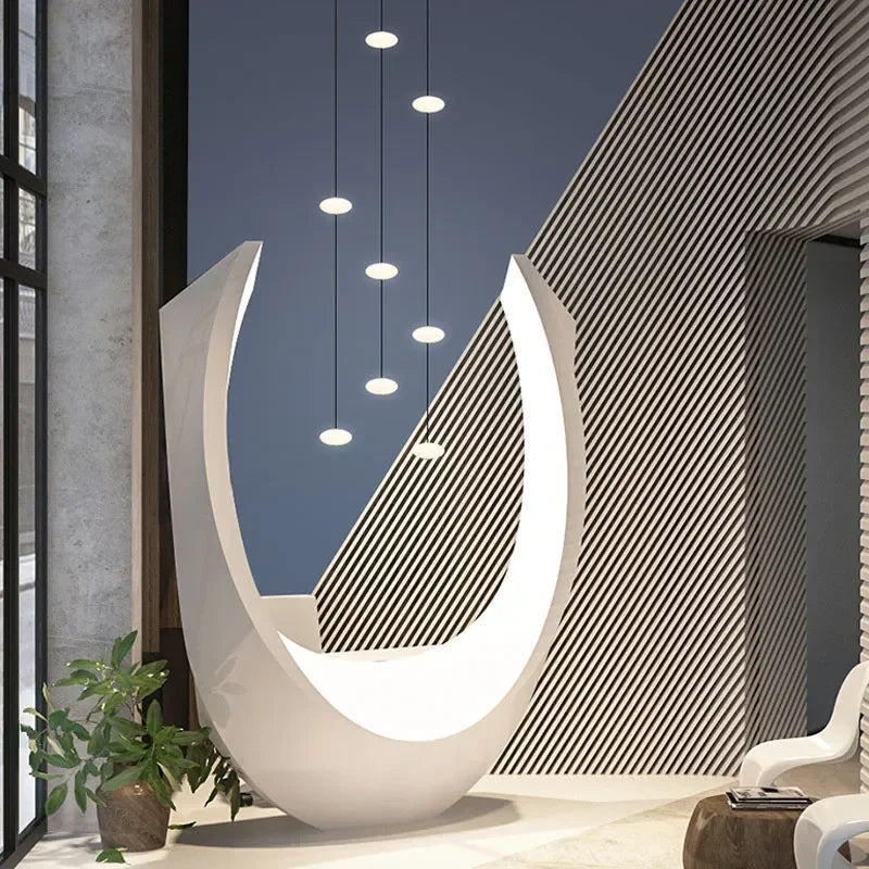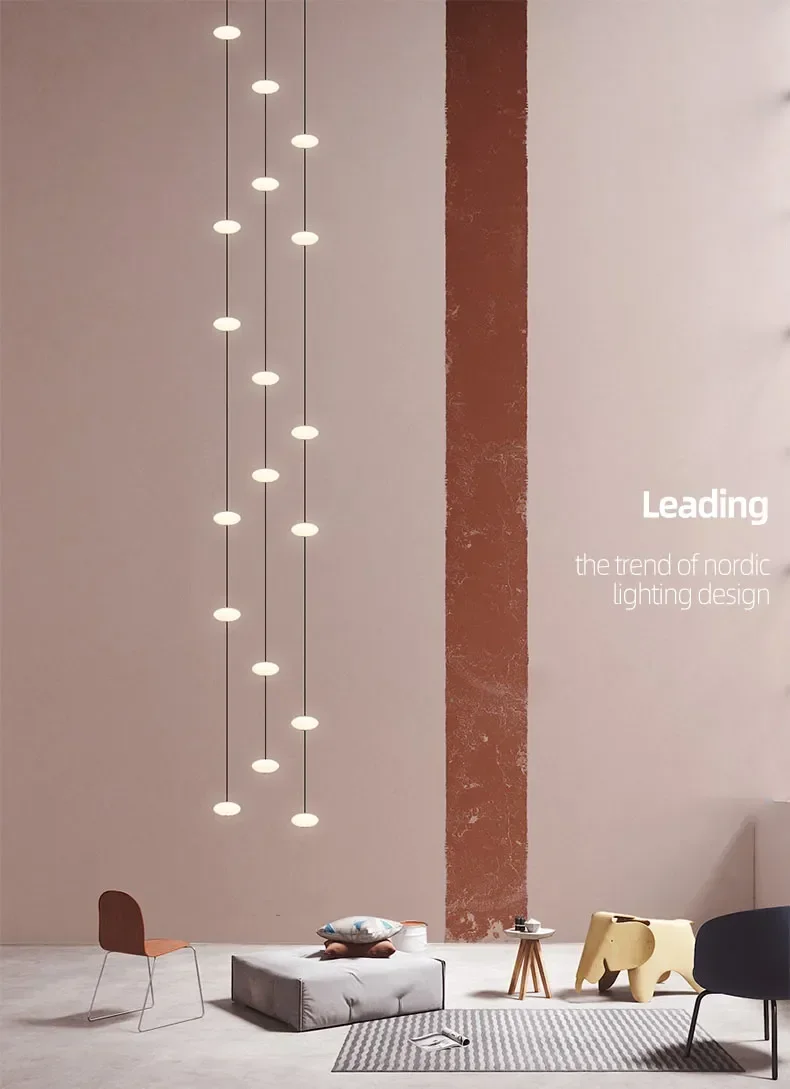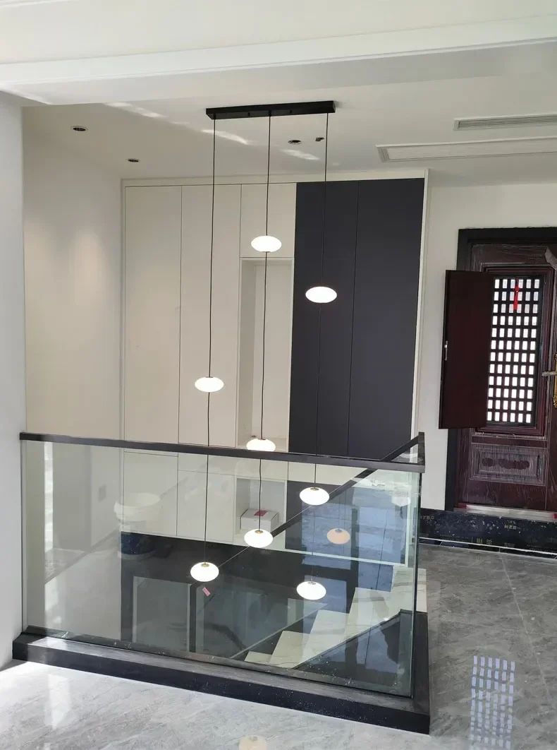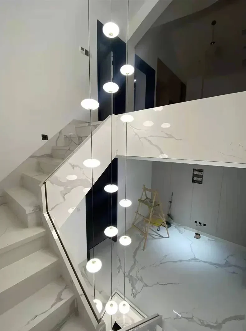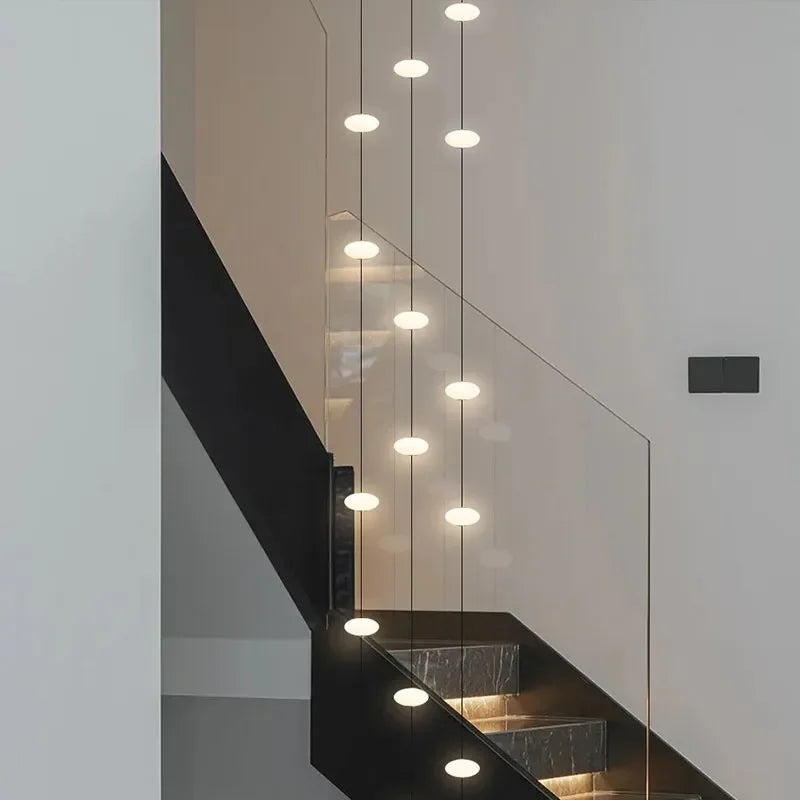 Modern Art Villa Stairwell Hollow LED Chandelier Minimalist Black Round Stair Hanging Lamps Indoor Home Long Lighting Fixtures