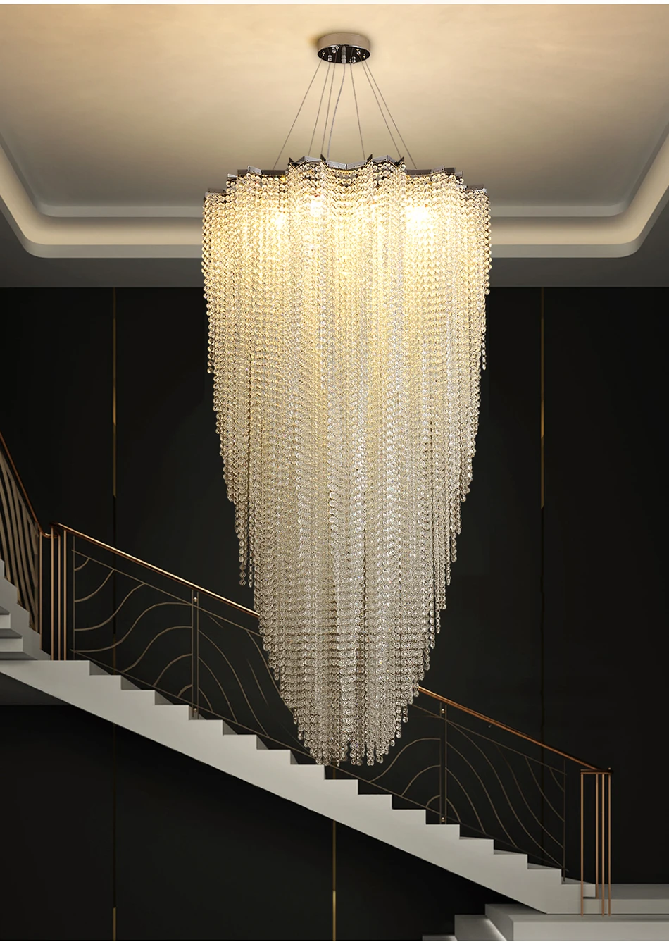Modern Crystal Chandelier For Lustre Villa Loft Home Decor Living Room Duplex Building Hollow Large Chandelier Staircase Light