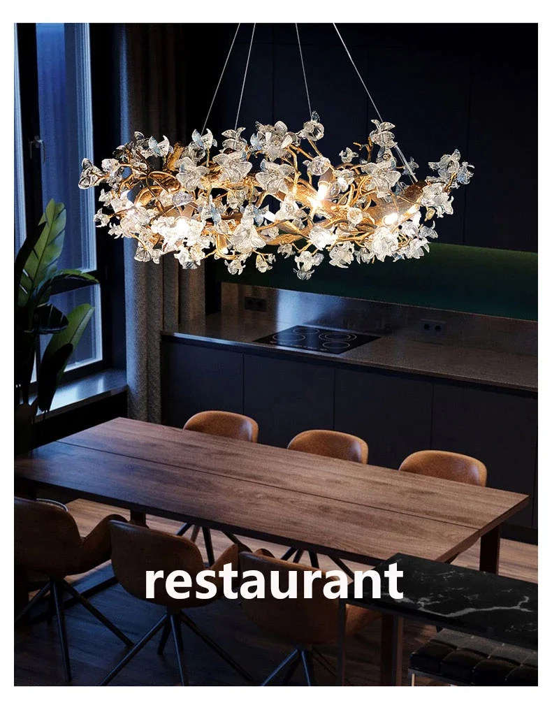 Modern Design Living Room Chandeliers Glass Crystal Handmade Kapok Flower Pendant Lamp for Bar Hotel Villa Indoor Decor Fixture