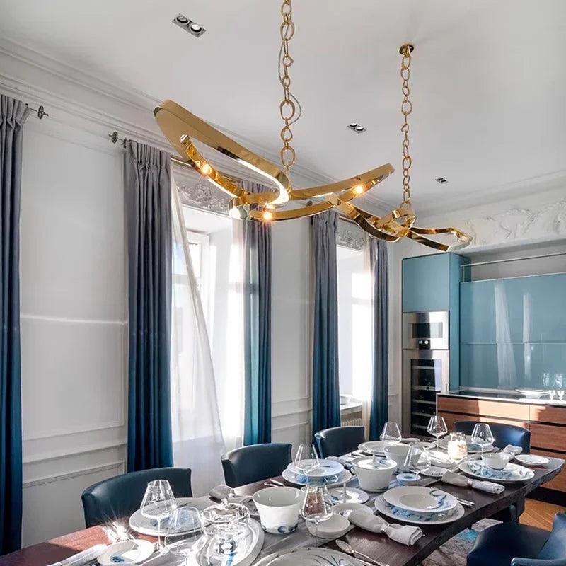 Modern European And American New Restaurant Chandeliers Italian Designer Bar Pendant Light Luxury Villa Stainless Steel Lamps