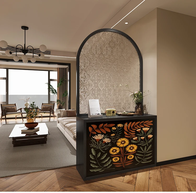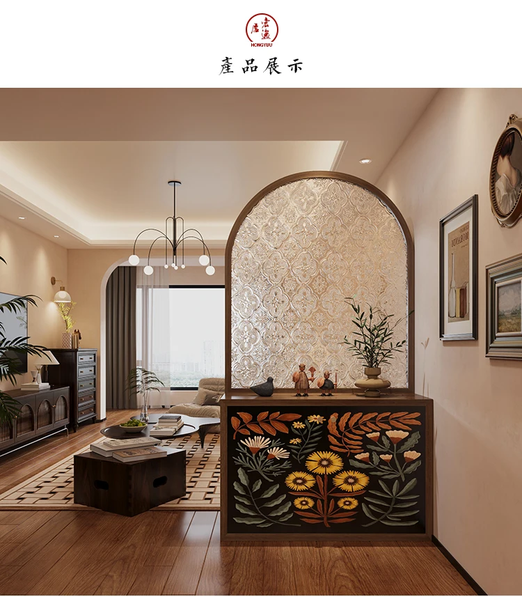 Modern French style wooden entrance door, living room, shoe cabinet, Begonia glass screen partition, dining room, bathroom, cove