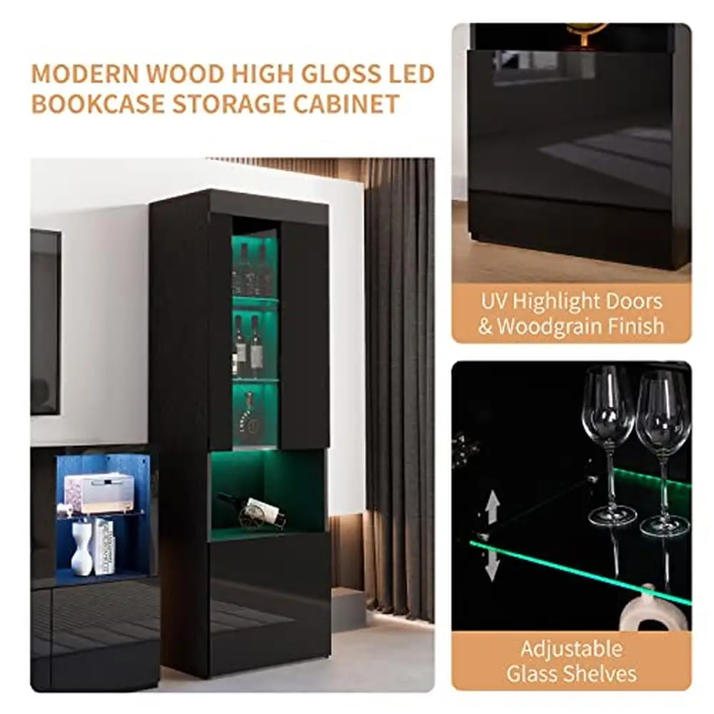 A complete set of living room furniture modern entertainment center, solve your matching worries. High gloss fronts with matte body, made of high quality MDF, durable and stylish, perfect decoration for your home!
