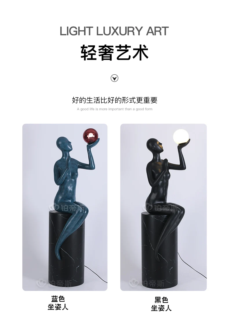 Modern humanoid art decoration floor lamp, hotel lobby, home, living room, creative figures, floor sculpture, large decoration