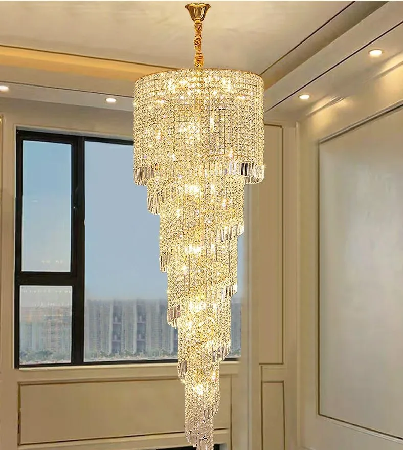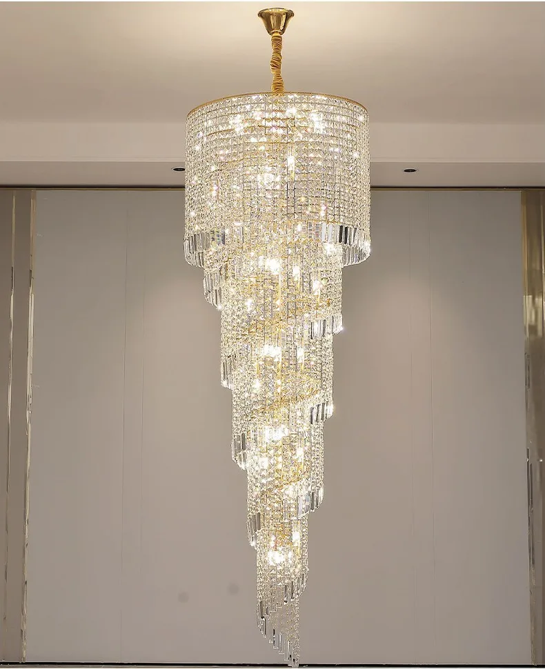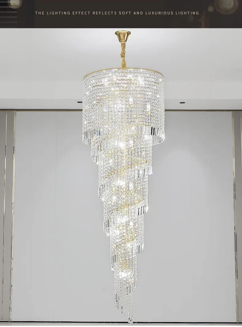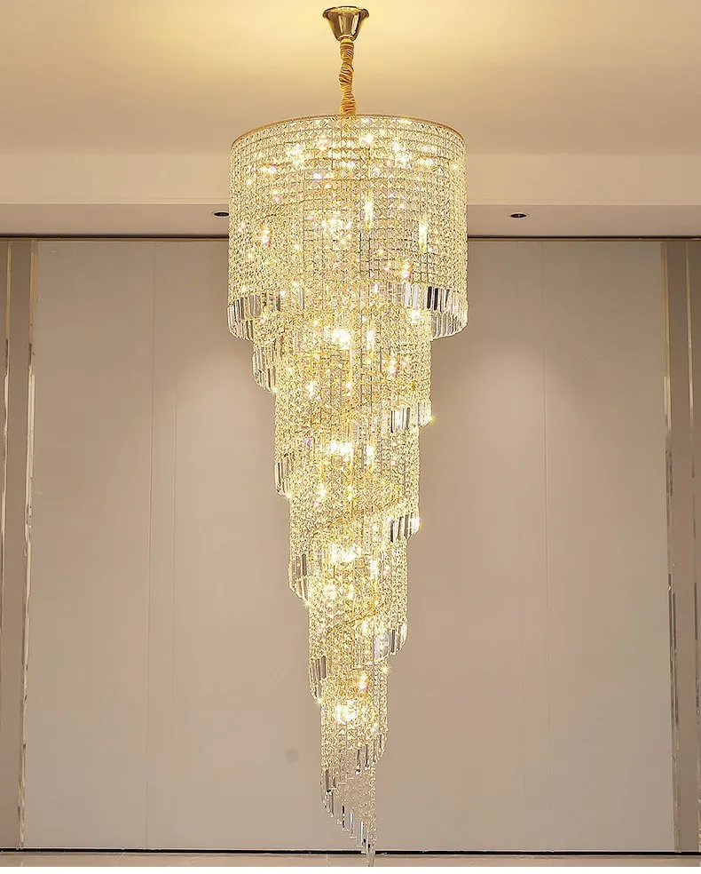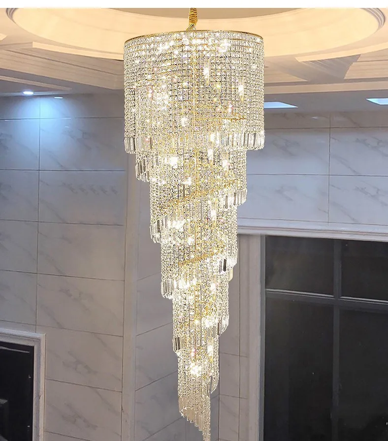 Modern Large Crystal Stair Chandelier for Luxury High House Villa Home Decoration Ceiling Hanging Light Fixture Gold/Chrome