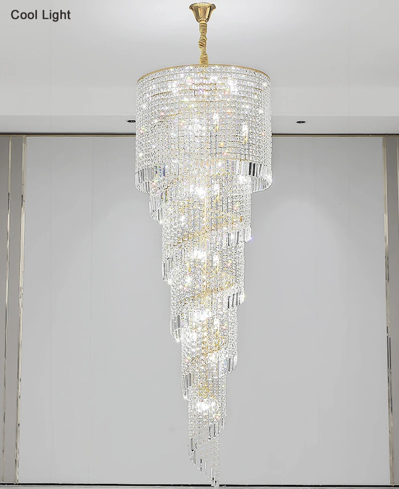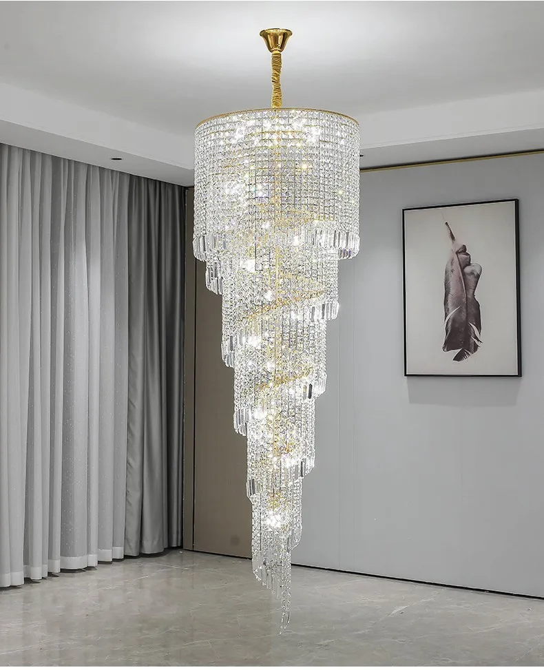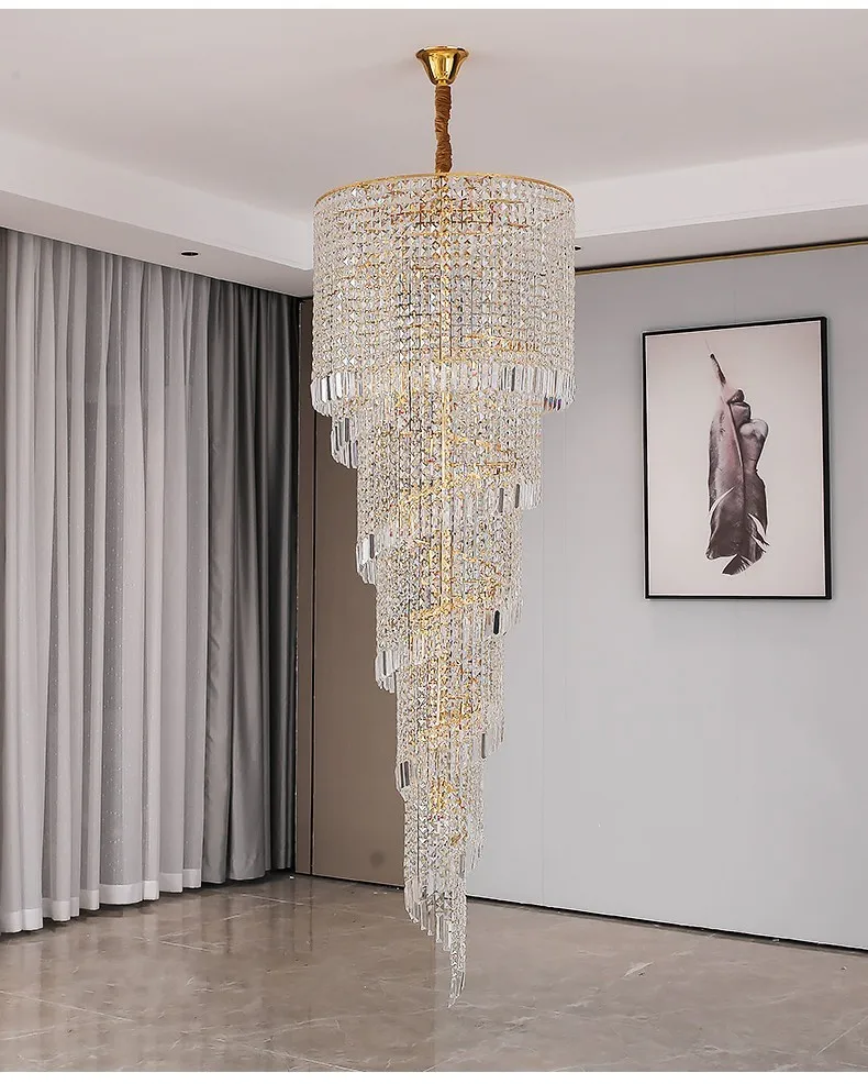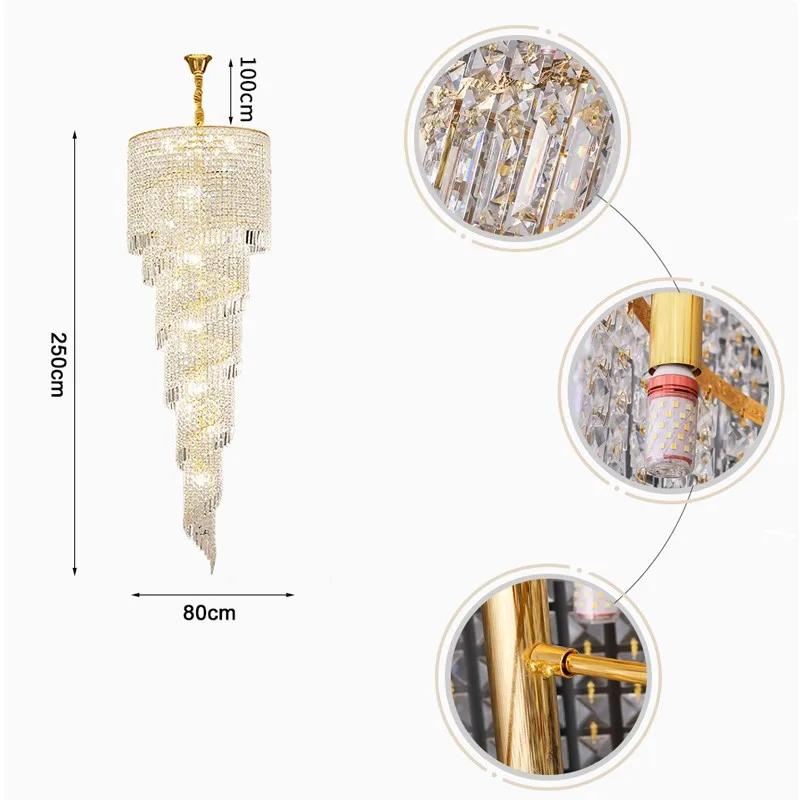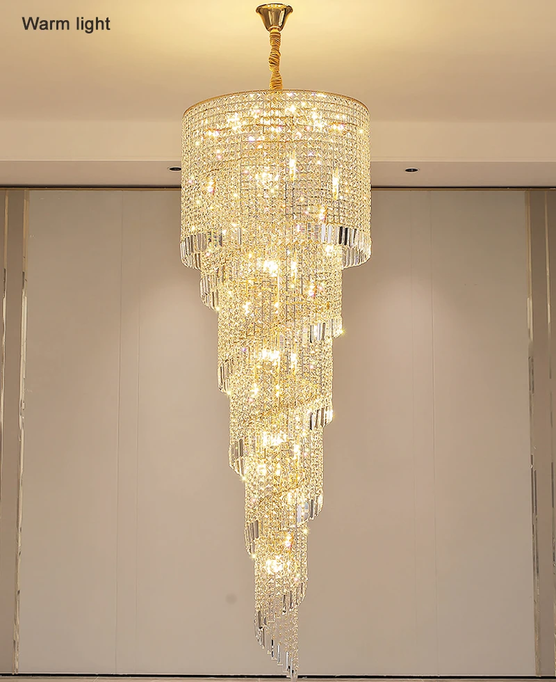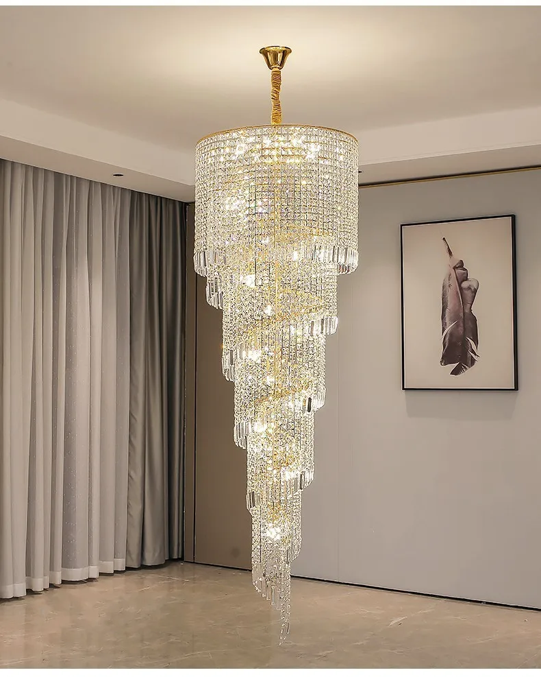 Modern Large Crystal Stair Chandelier for Luxury High House Villa Home Decoration Ceiling Hanging Light Fixture Gold/Chrome