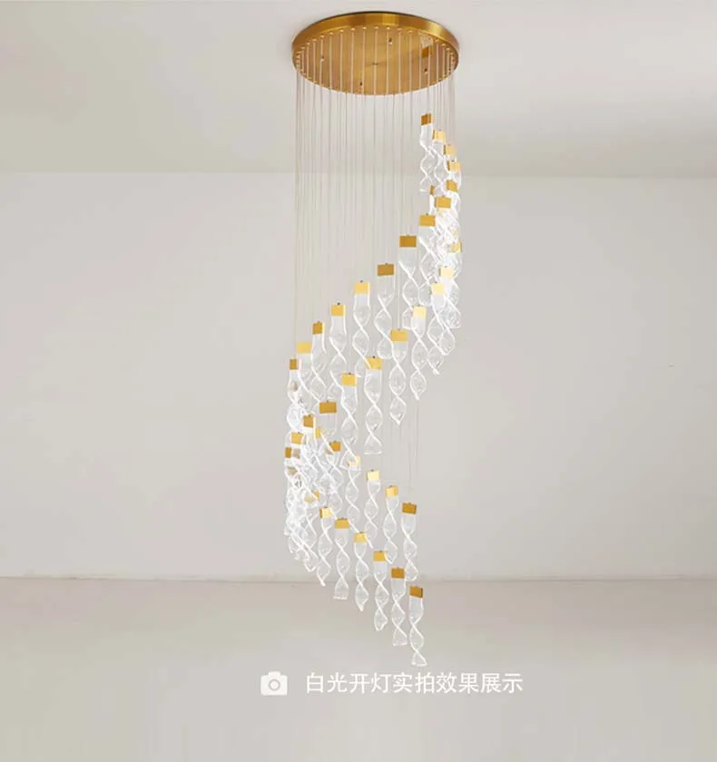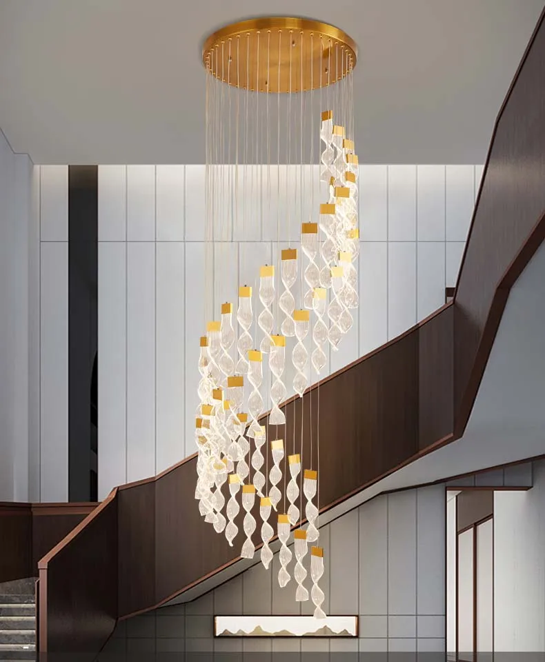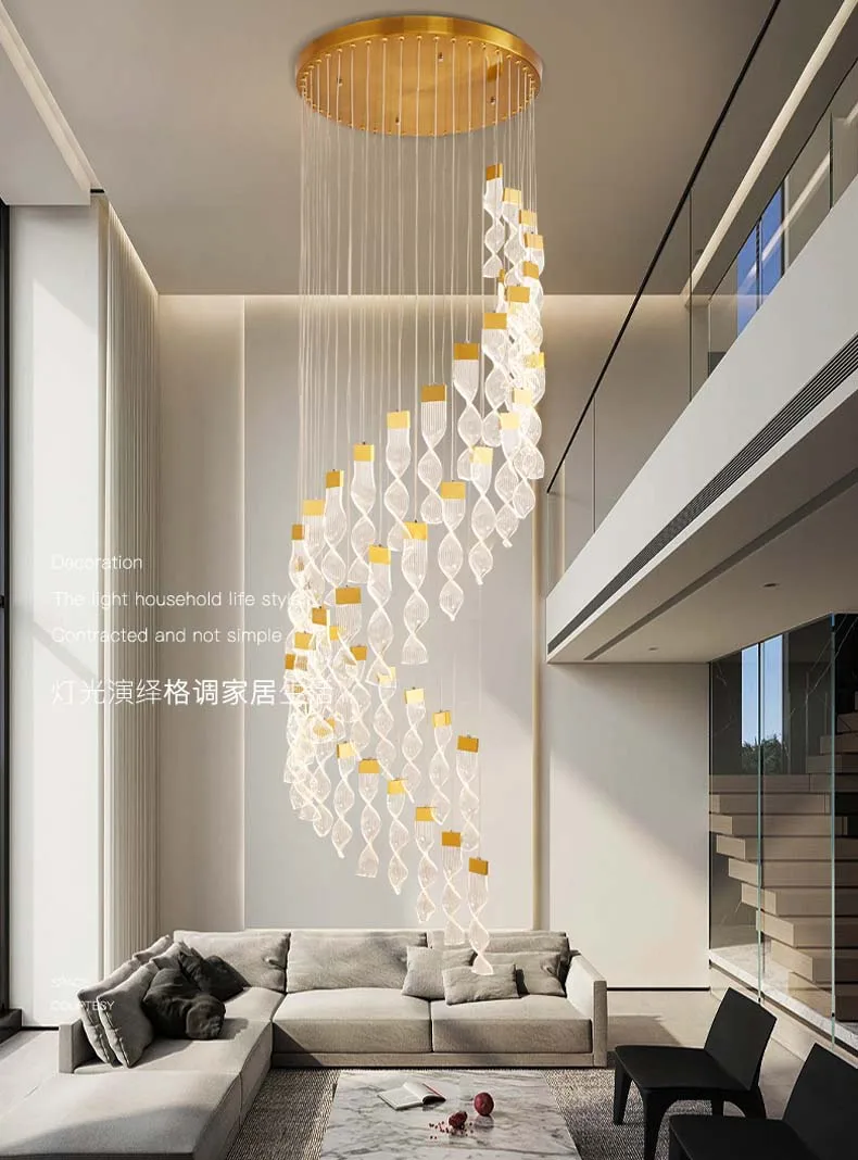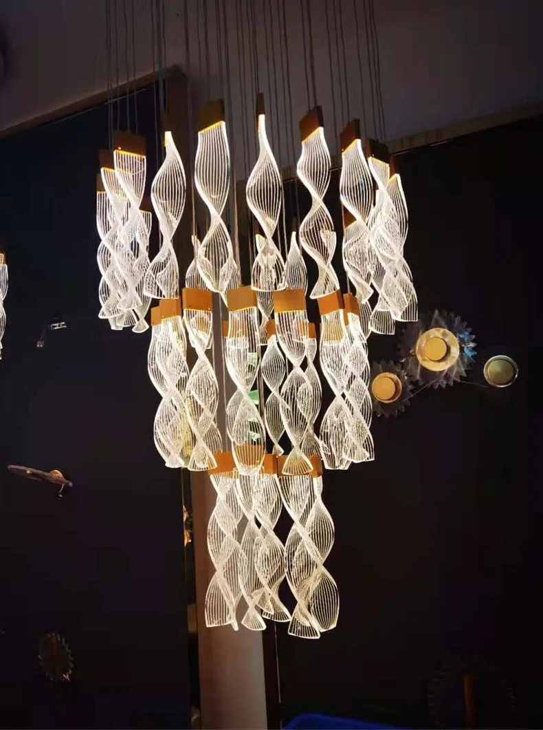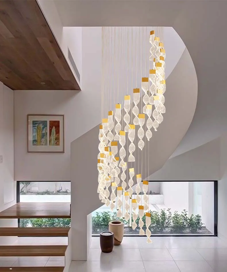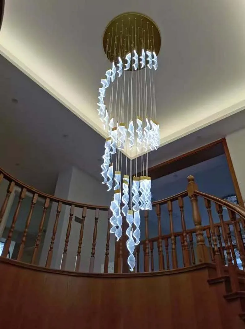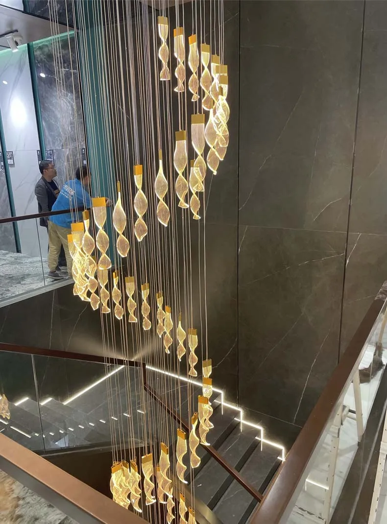 Modern LED Crystal Staircase Chandelier Luxury Creative Design Hallway Villa Hanging Lamps Large Indoor Acrylic Lighting Fixture