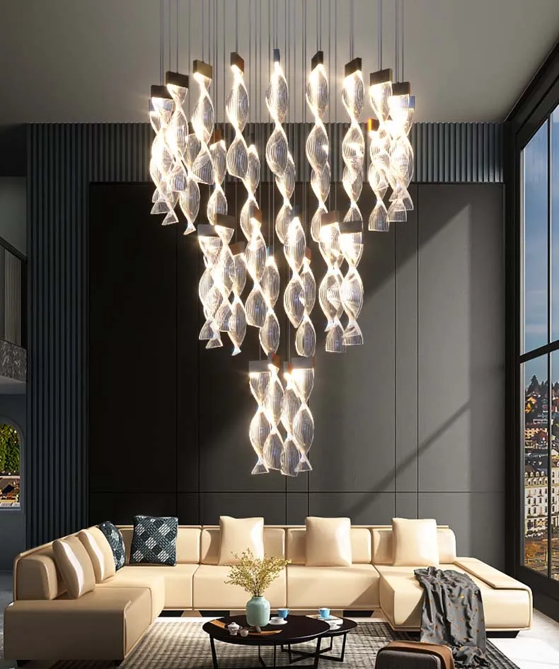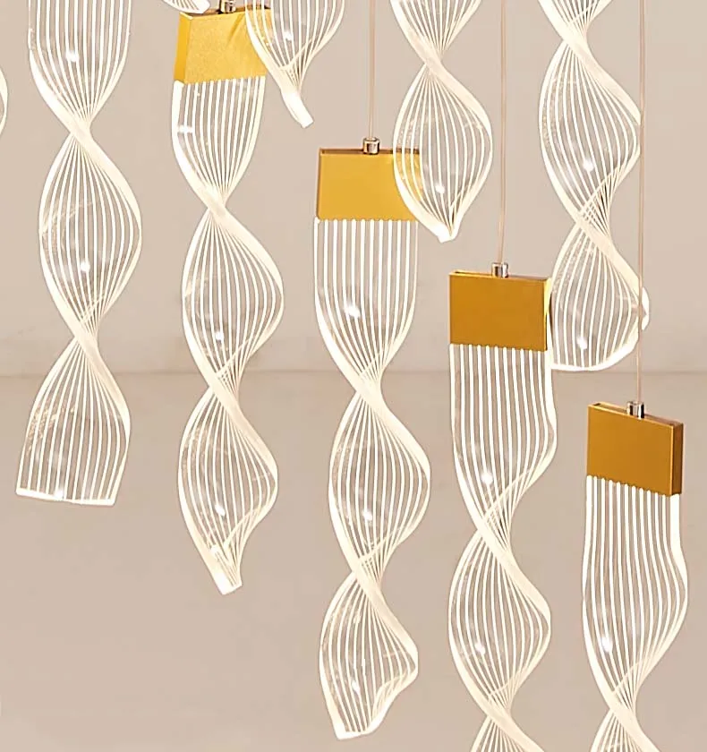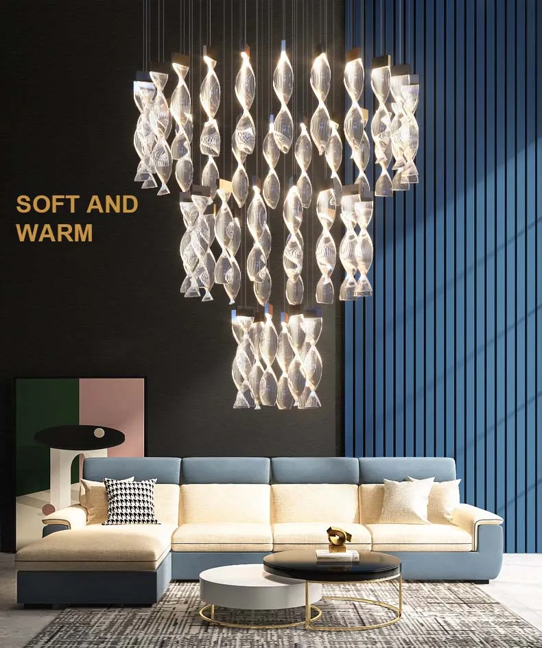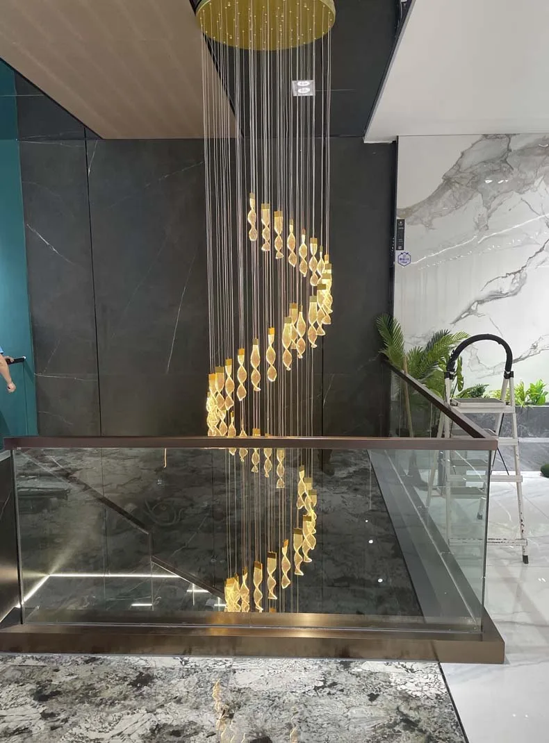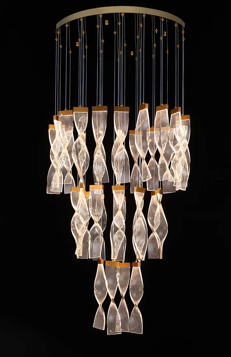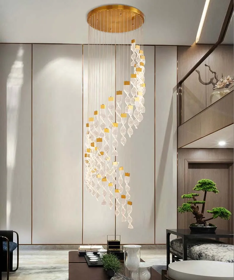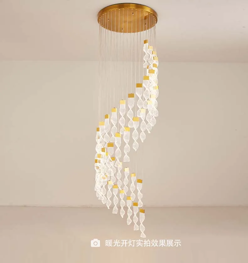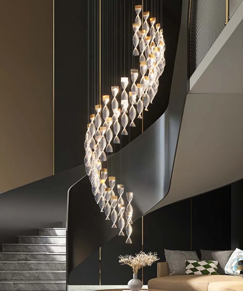 Modern LED Crystal Staircase Chandelier Luxury Creative Design Hallway Villa Hanging Lamps Large Indoor Acrylic Lighting Fixture