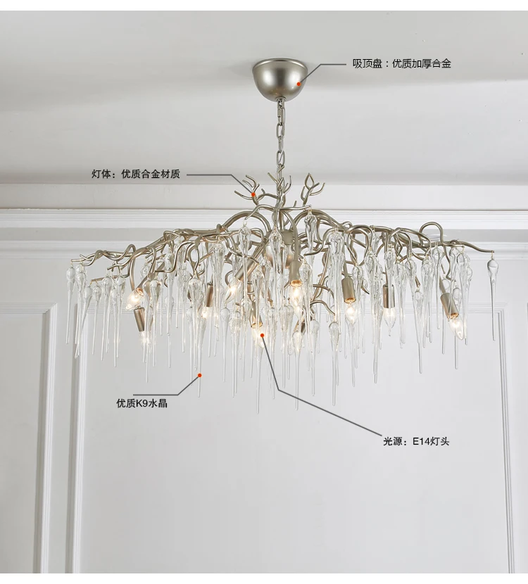 Modern living room chandelier crystal personality simple villa dining room bedroom French designer model office lamps