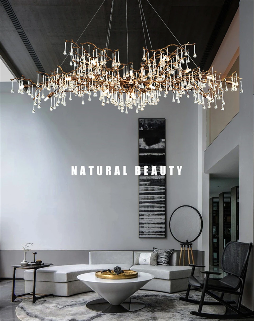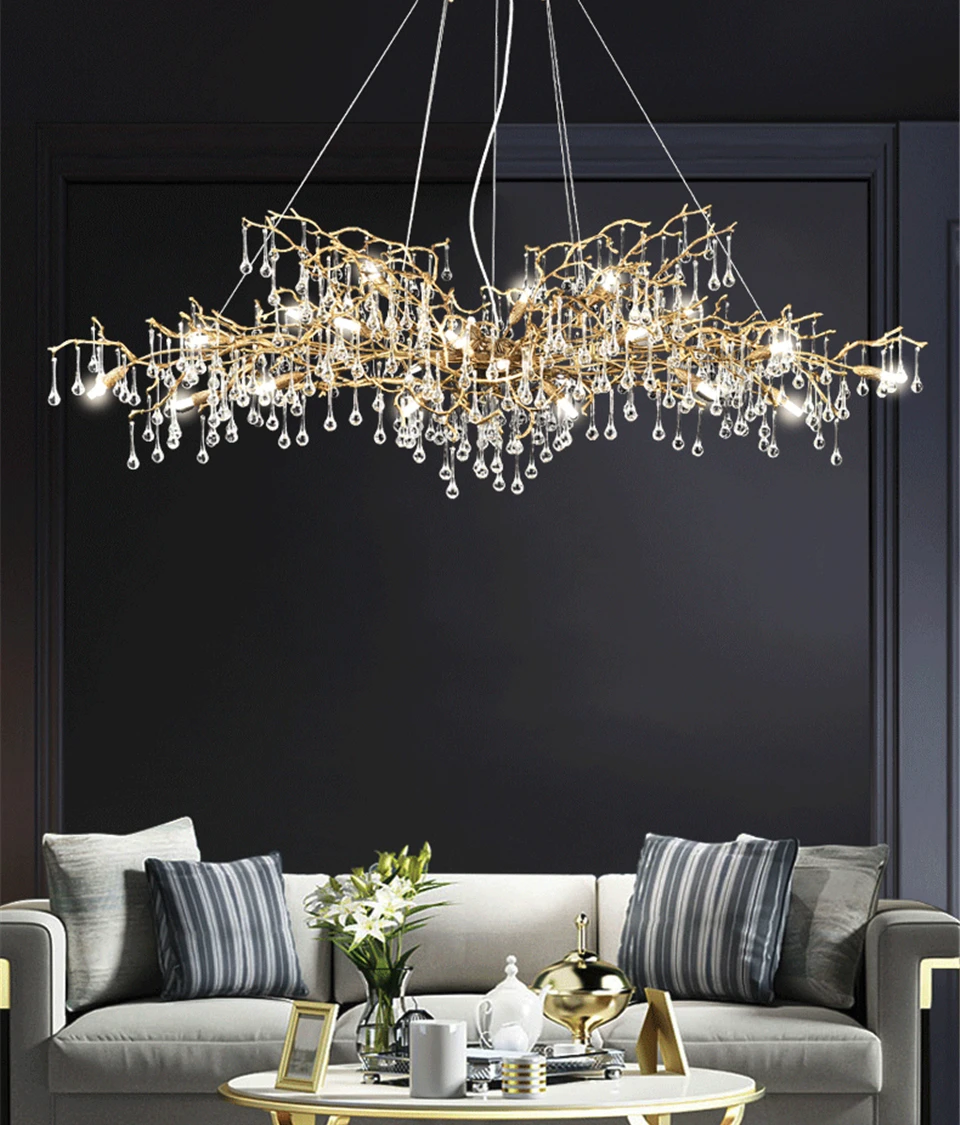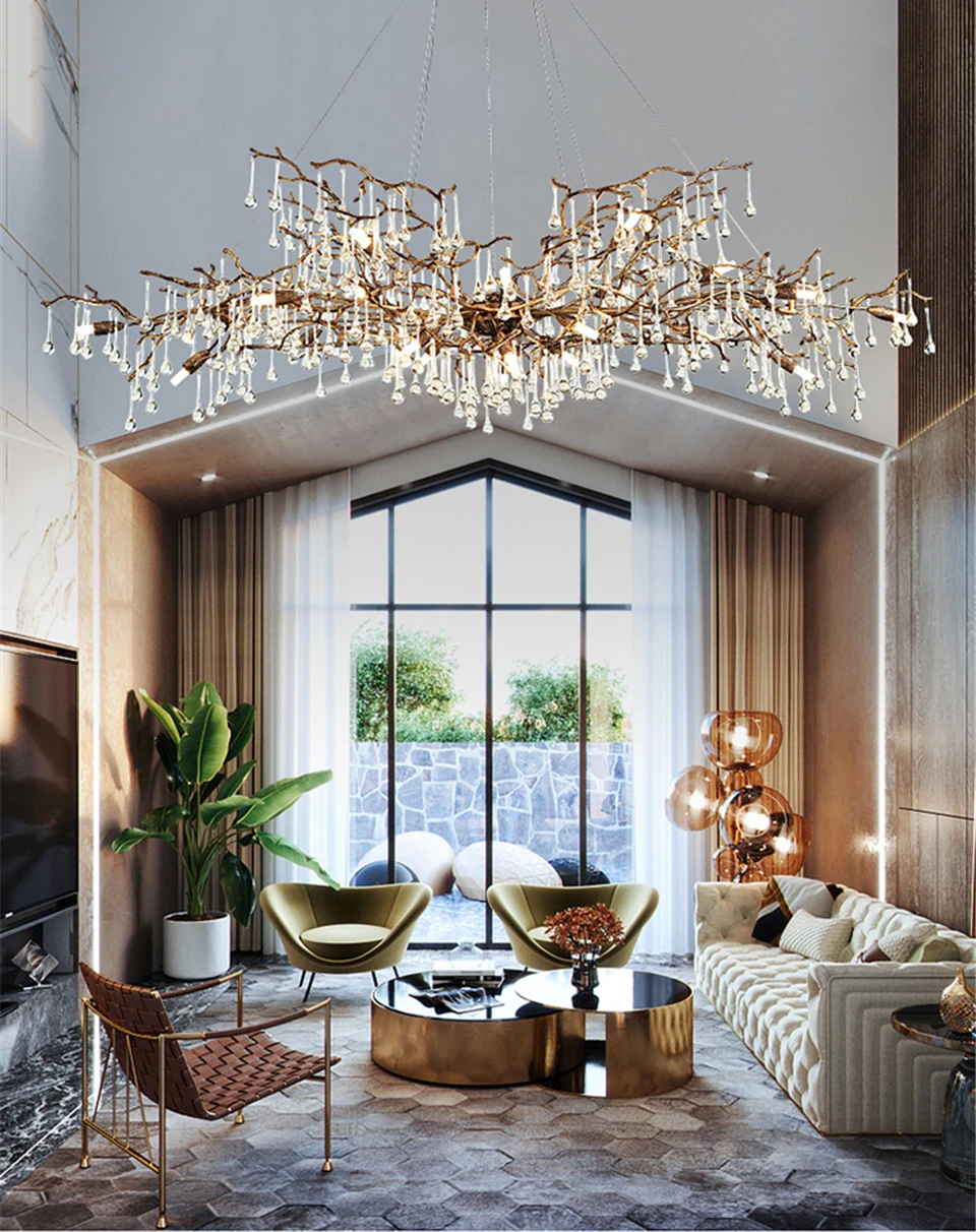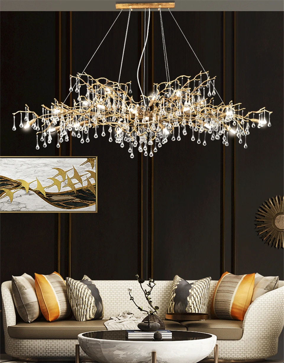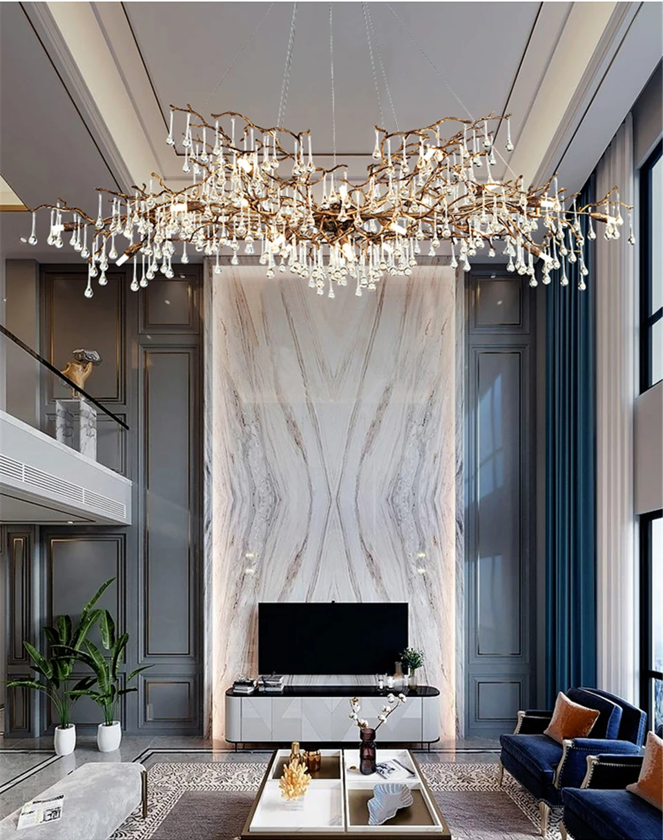 Modern Luxury Gold Crystal LED Chandelier Lighting LOFT Villa Large Lustre Pendant Lamp For Living Room Hotel Art Decor Lighting