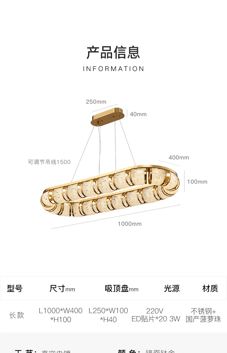 Modern Luxury LED Chandeliers Dining Living Room Gold Lighting Hanging Fixtures Villa Lobby Home Decoration Stainless Steel Lamp