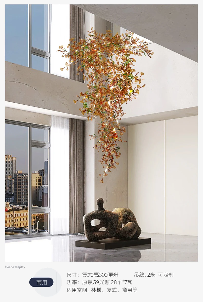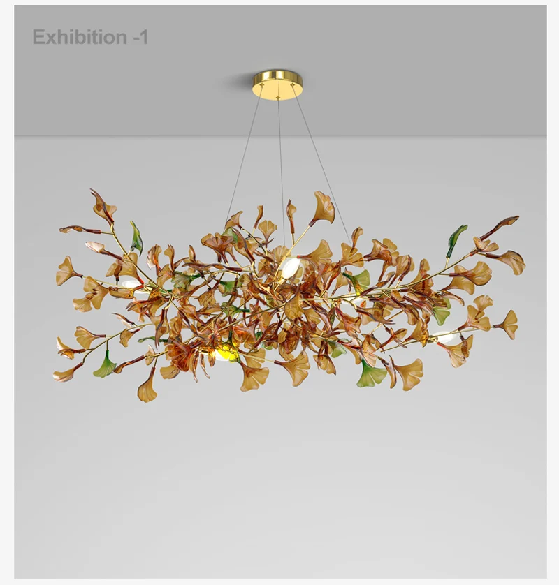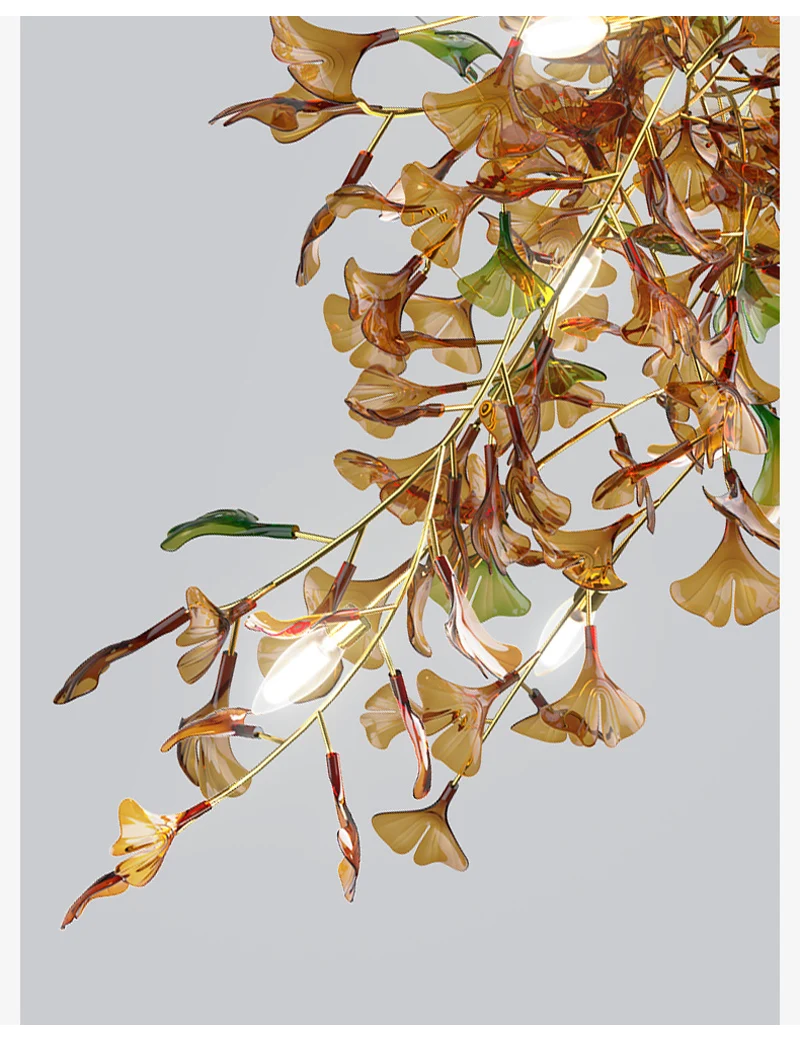 Modern Luxury Living Room Chandeliers Custom Ginkgo Leaves High-end Hanging Lights for VIlla Hotel Hall Gallery Ceiling Lamps