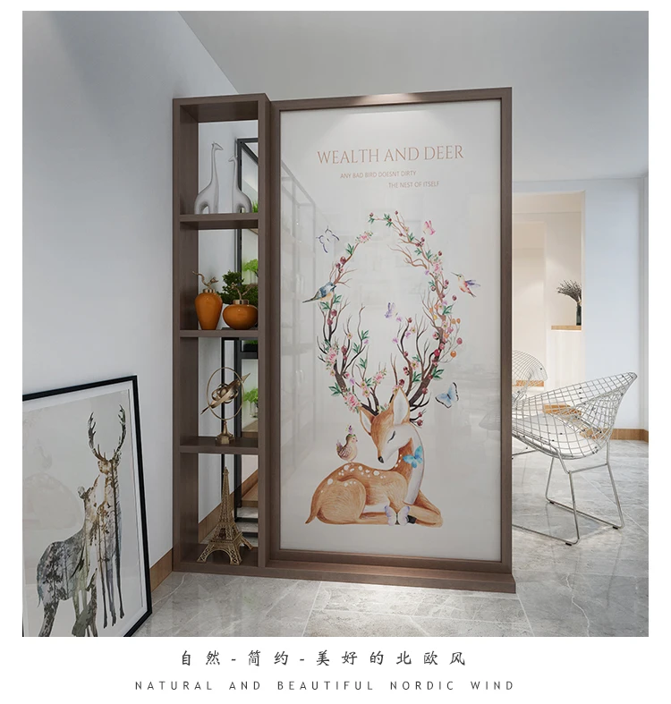 Modern minimalist household entrance, foyer, shelf, screen partition, living room, Nordic decoration, solid wood semi transparen