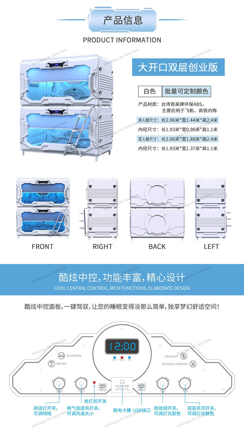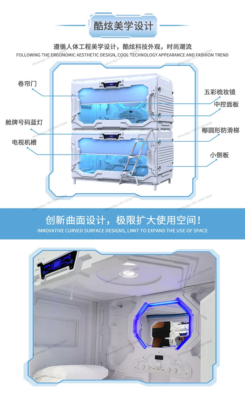 Modern minimalist large opening space capsule bed, esports hotel, school dormitory, single person up and down bunk, Japanese cap
