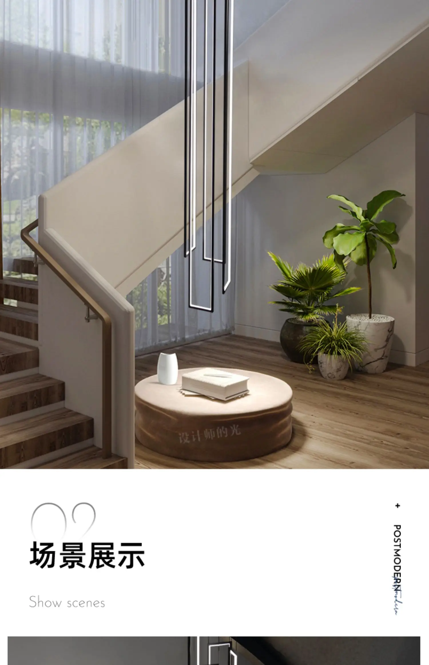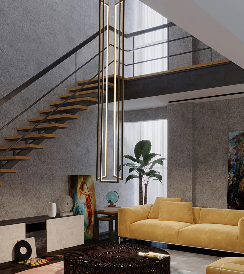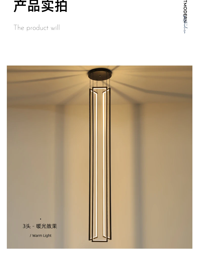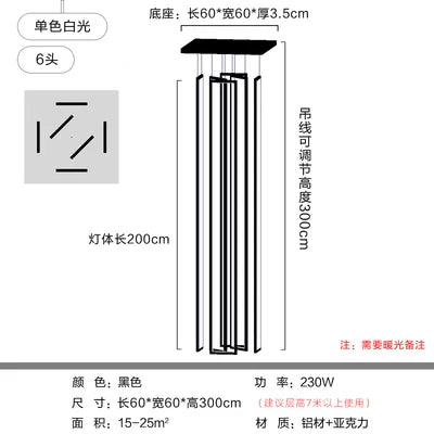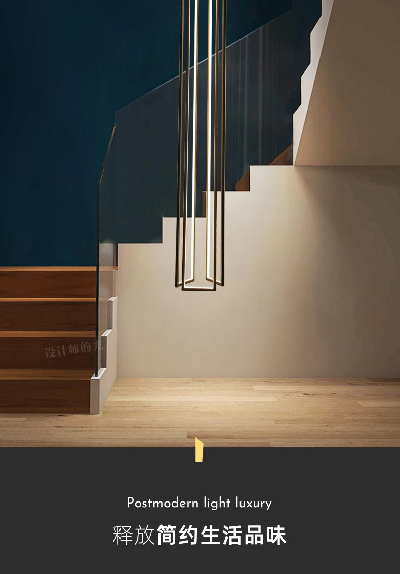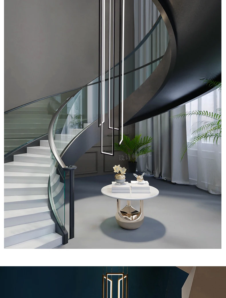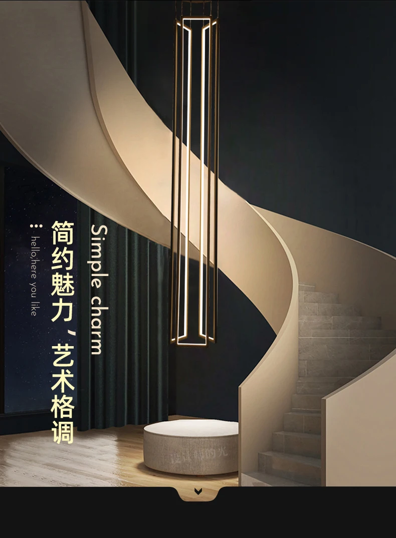 Modern minimalist villa minimalist Nordic light luxury personality rotating duplex building led long chandelier