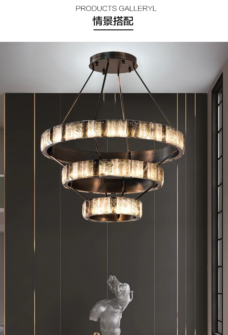 Modern minimalist villa staircase chandelier atmospheric living room creative duplex building wrought iron marble chandelier