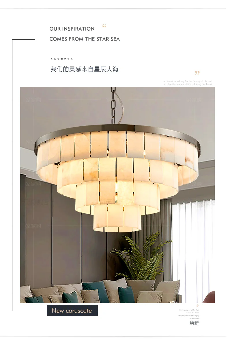 Modern new Chinese marble living room chandelier simple round dining room bedroom villa hotel private room lamps