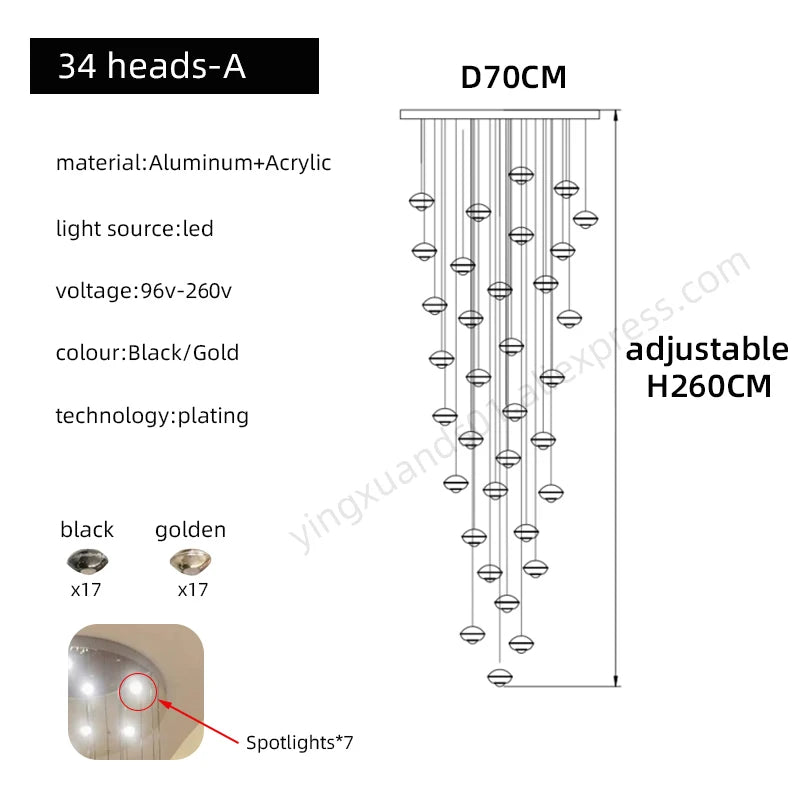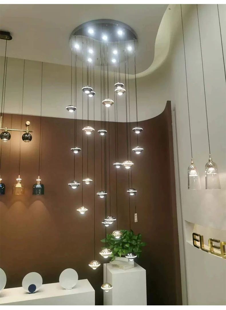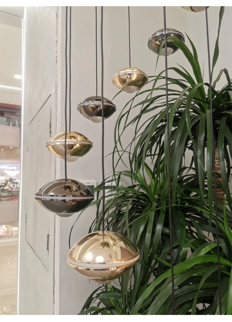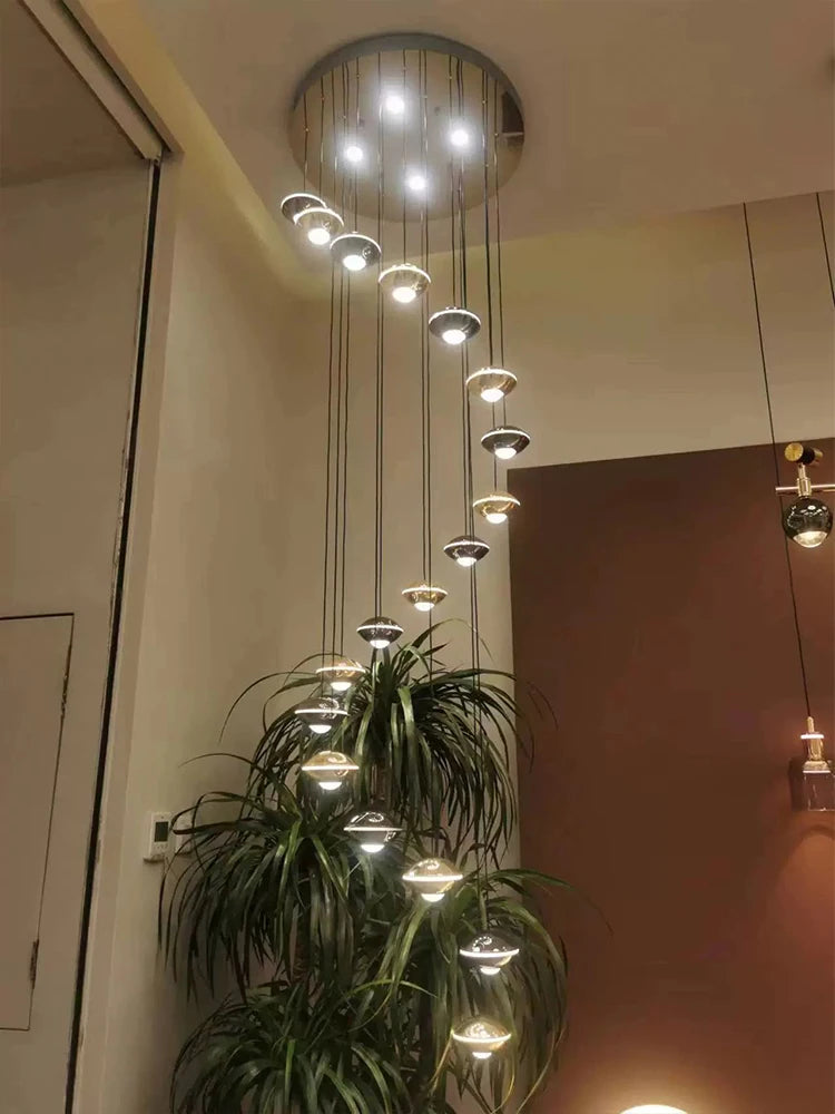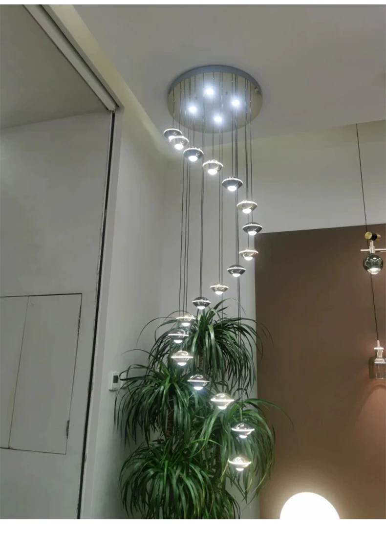Modern Simple LED Staircase Chandelier Indoor Attic Lighting Fixtures Living Room Creative Villa Hall Duplex Loft Pendant Light