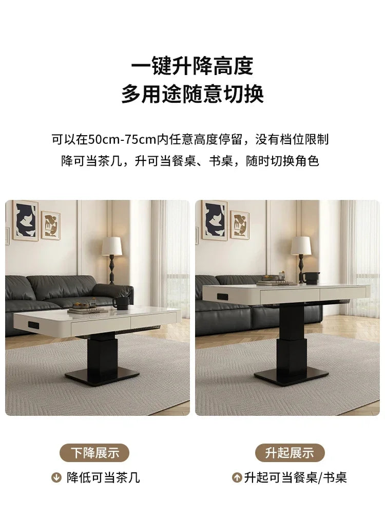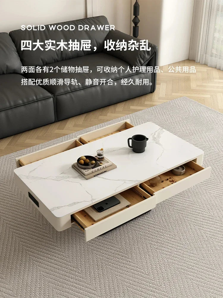 MMOOKA Modern Simple Lifting Coffee Table Dual-Use Living Room Creative Solid Wood Coffee Table
