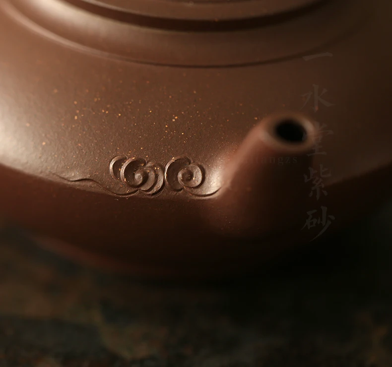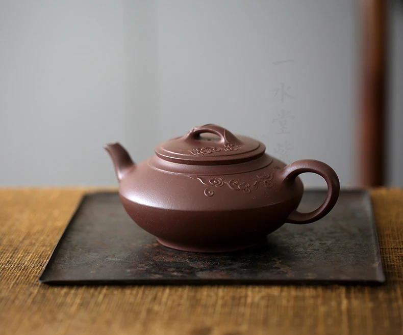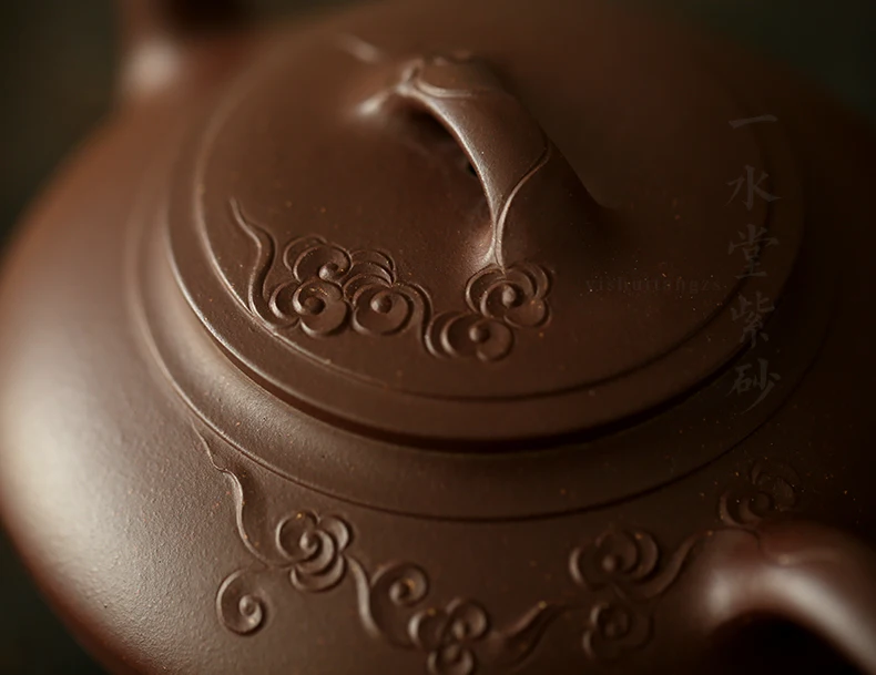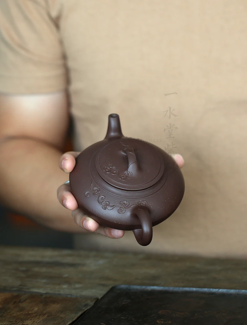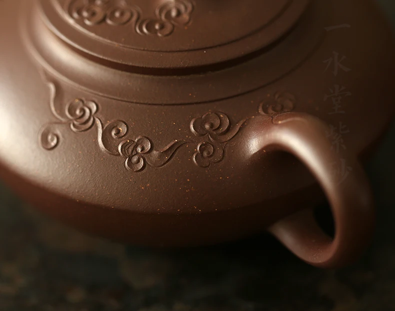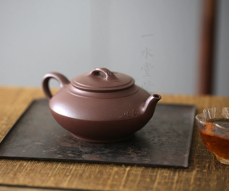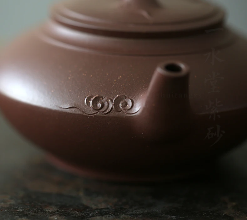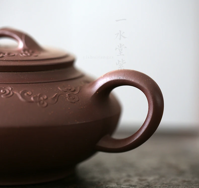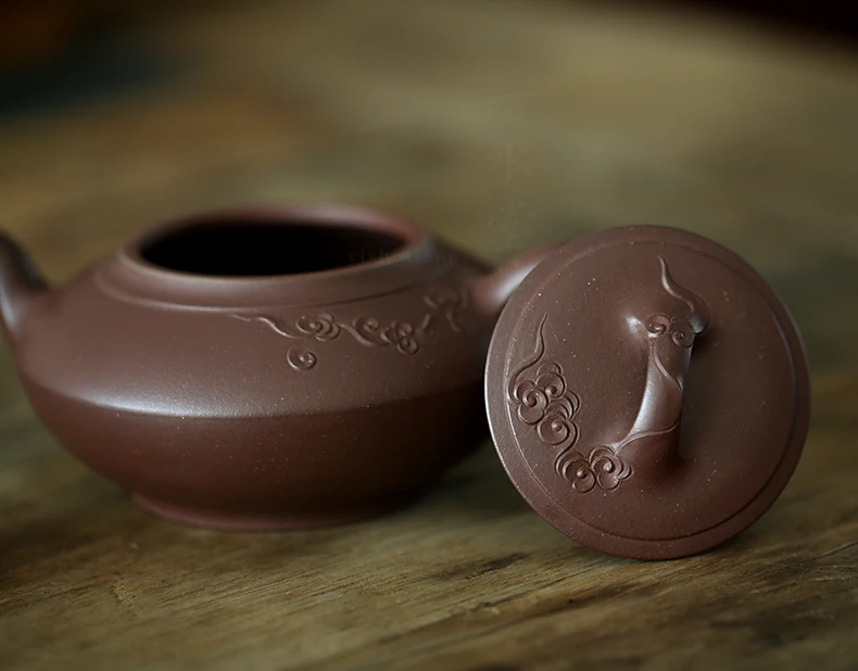Monohydrate hall yixing undressed ore pure manual recommended lingyun purple clay pot of 320 ml flexibly moire figure