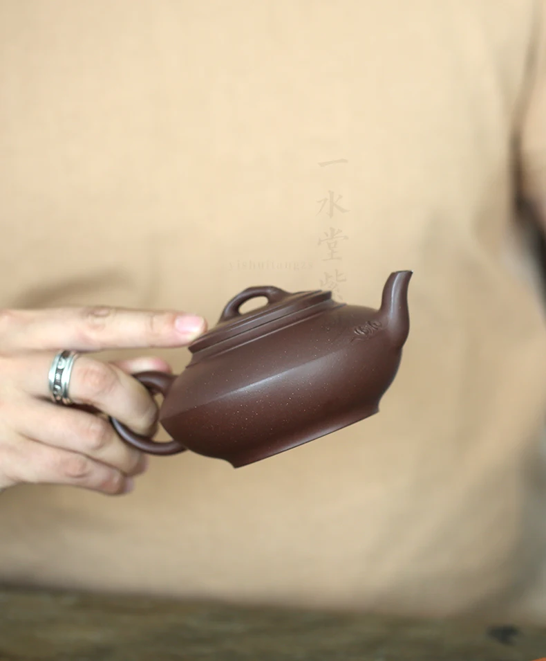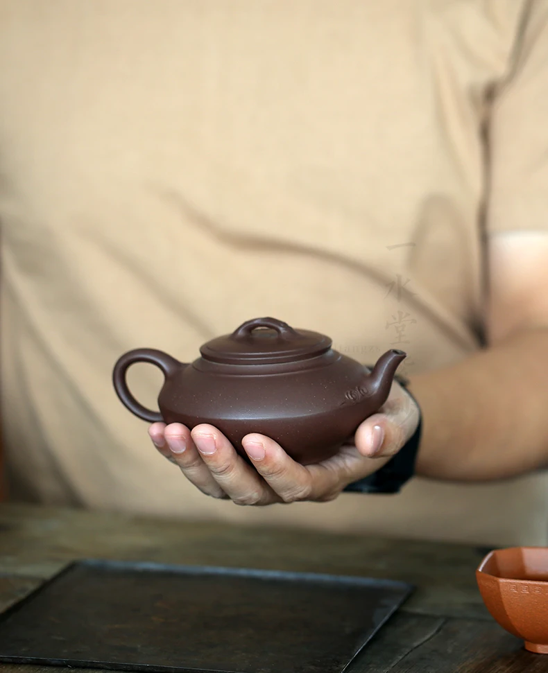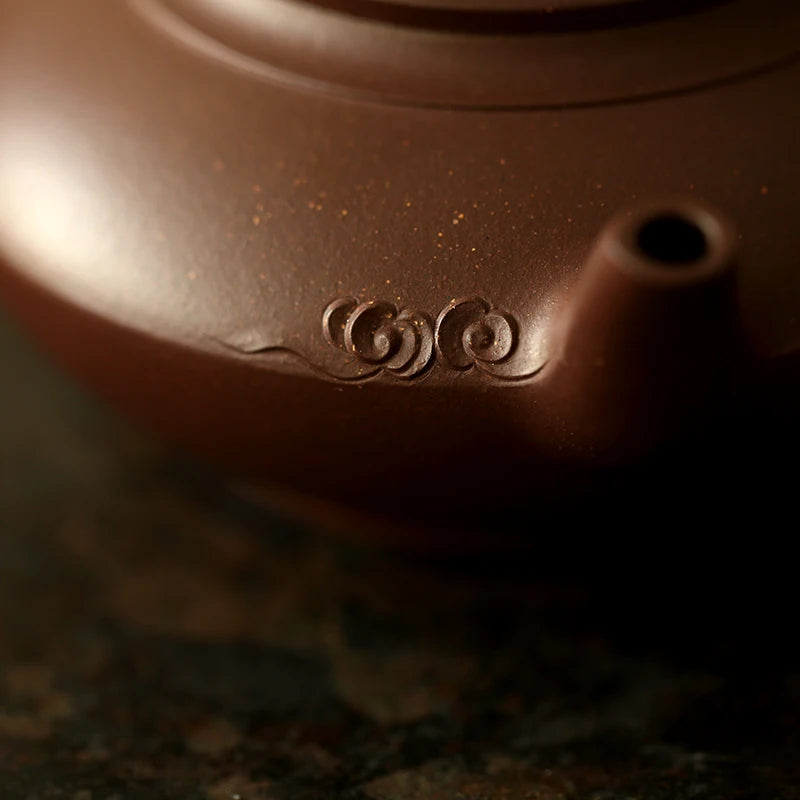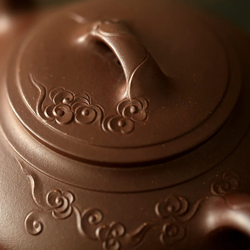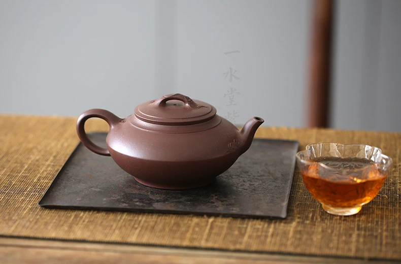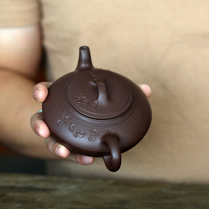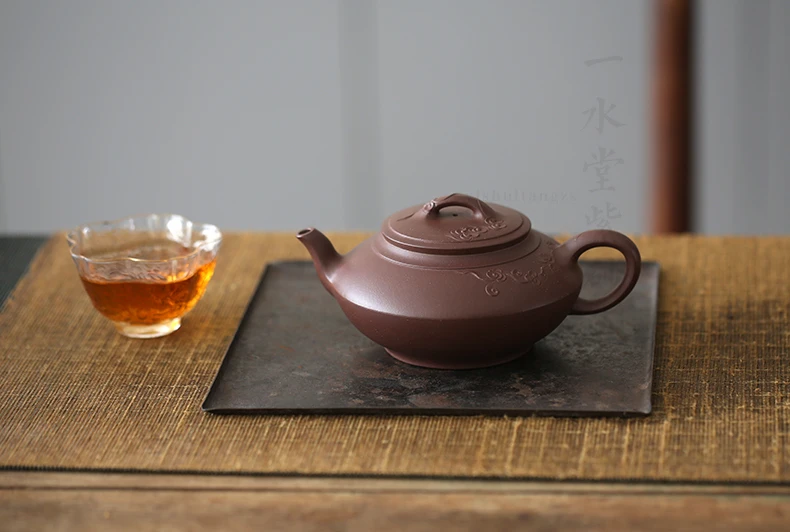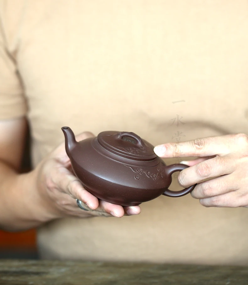 Monohydrate hall yixing undressed ore pure manual recommended lingyun purple clay pot of 320 ml flexibly moire figure