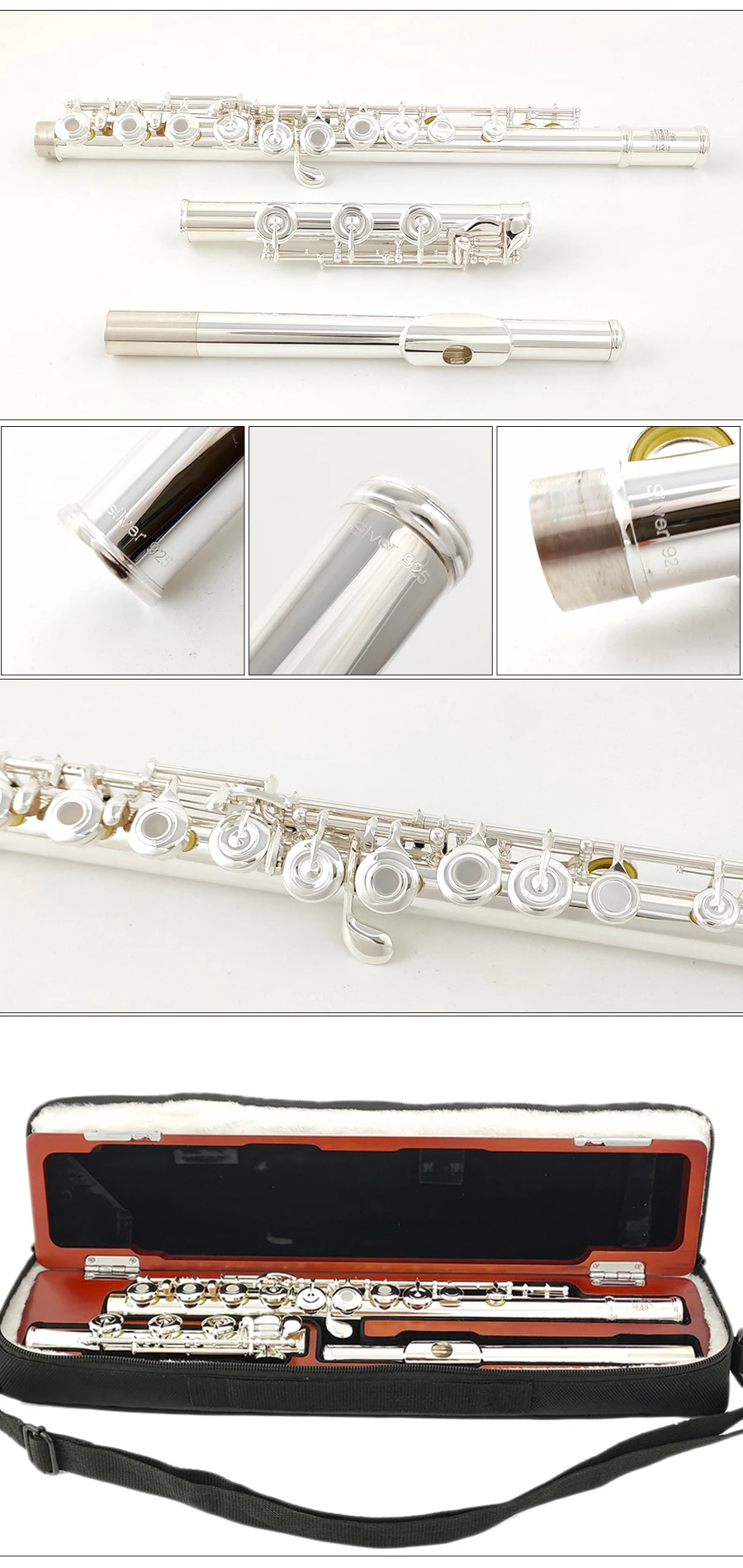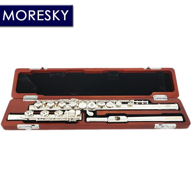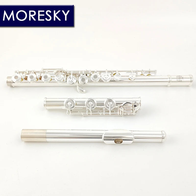 MORESKY 17 Open Holes C Key Flute 925 Sterling Silver Body Silver-Plated With E Key FML-308