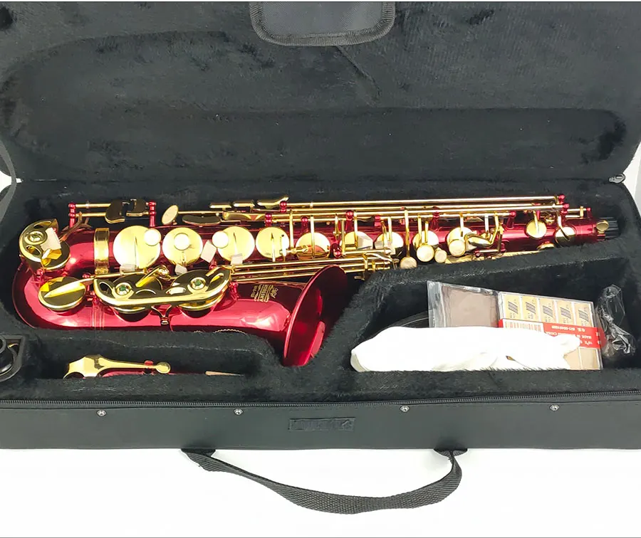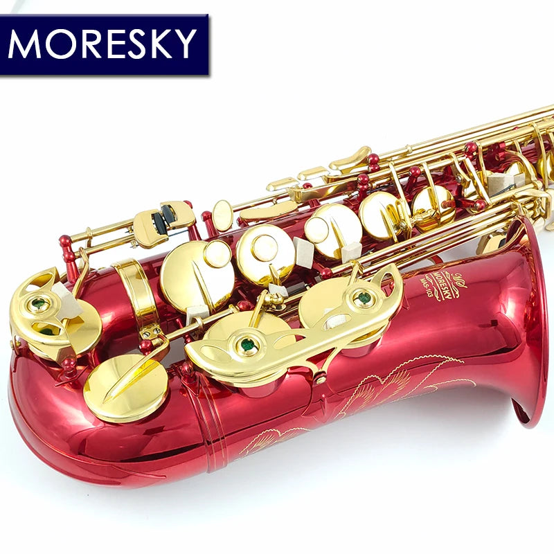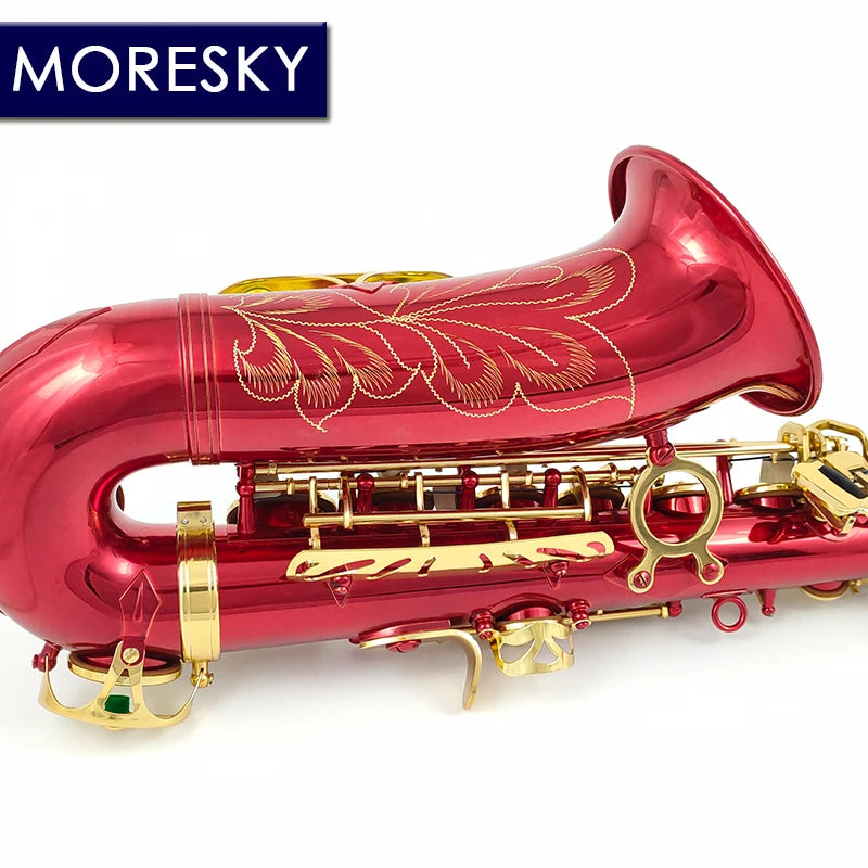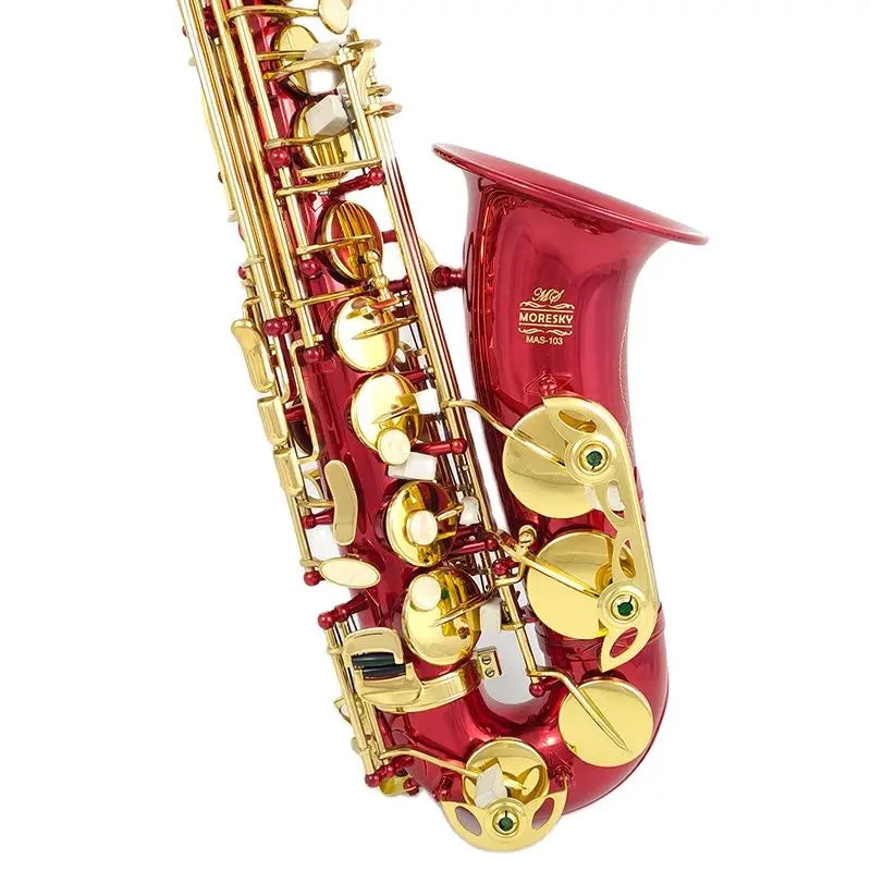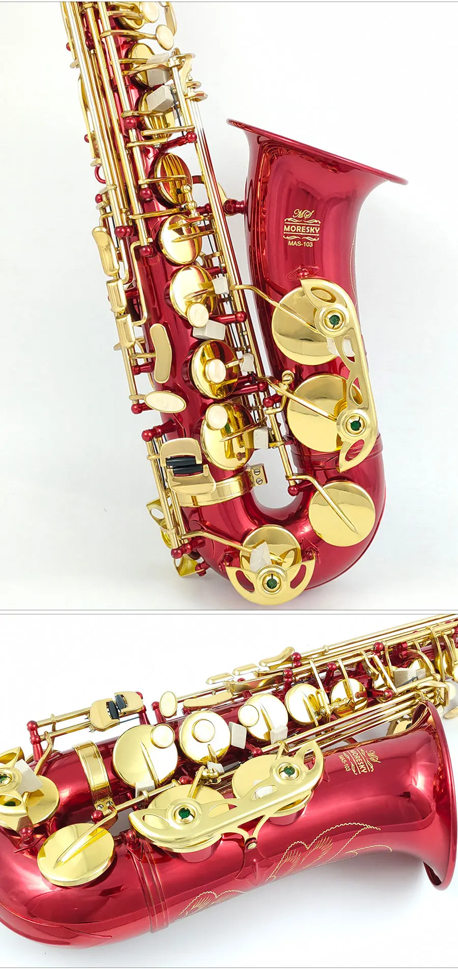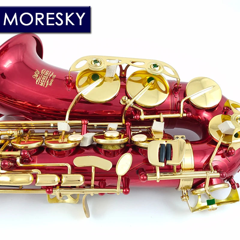 MORESKY Alto Saxophone Red E-Flat Eb Gold Keys With Case Music Instrument MAS-103