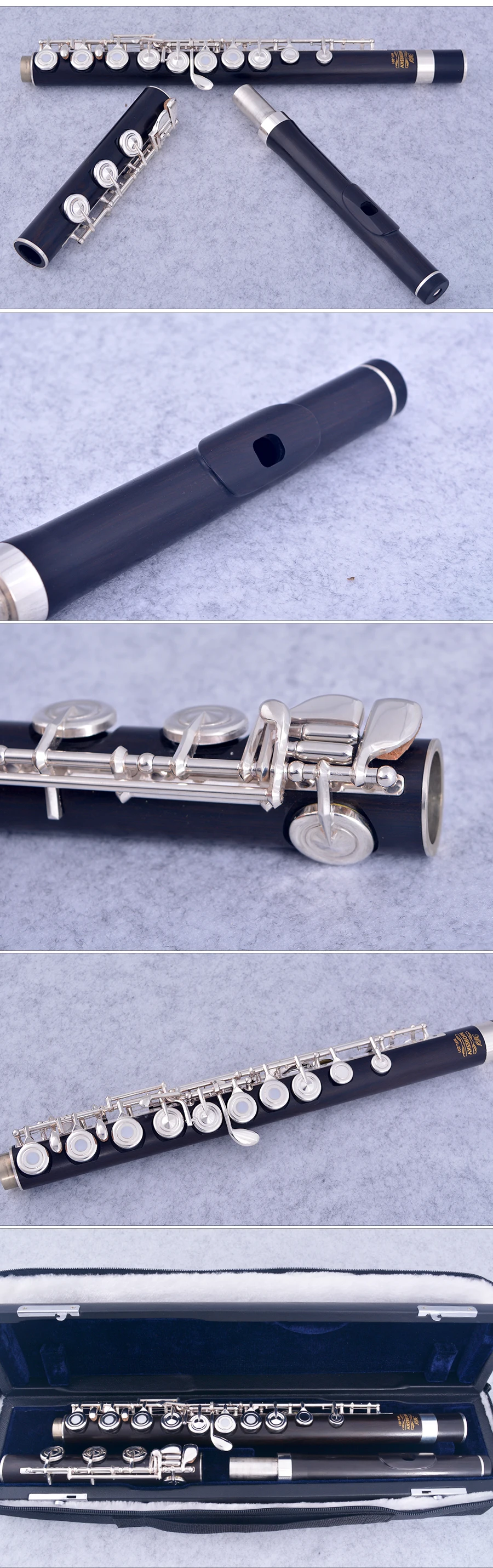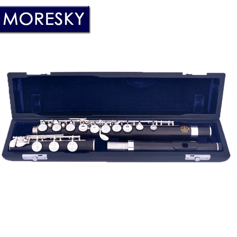 MORESKY-Open Hole Ebony Flute, 17 Holes, Silver Plated, E Key, Grenadilla Wood, Professional Flute MFL-201
