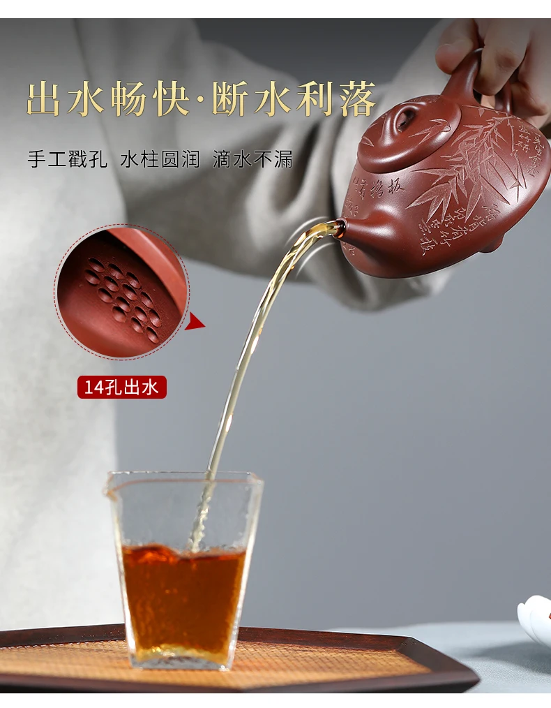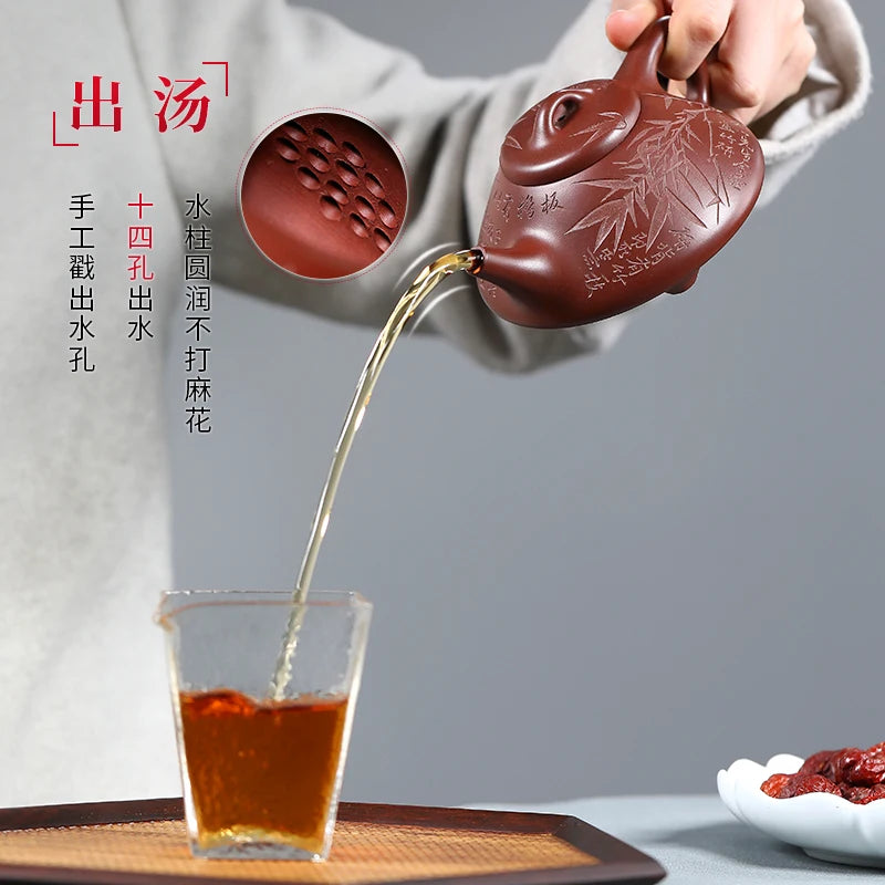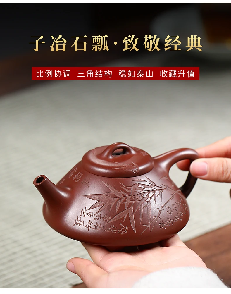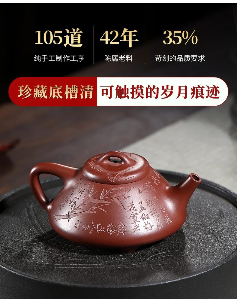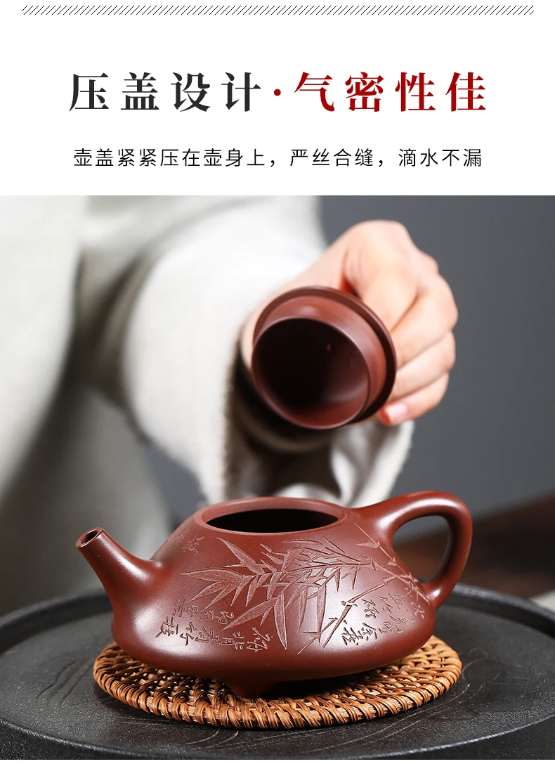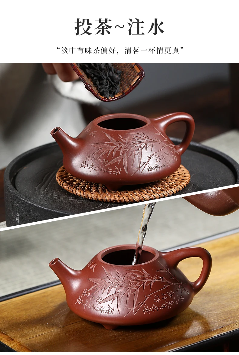 |mud yixing recommended pure manual famous teapot kung fu tea set household single pot carved bamboo stone gourd ladle