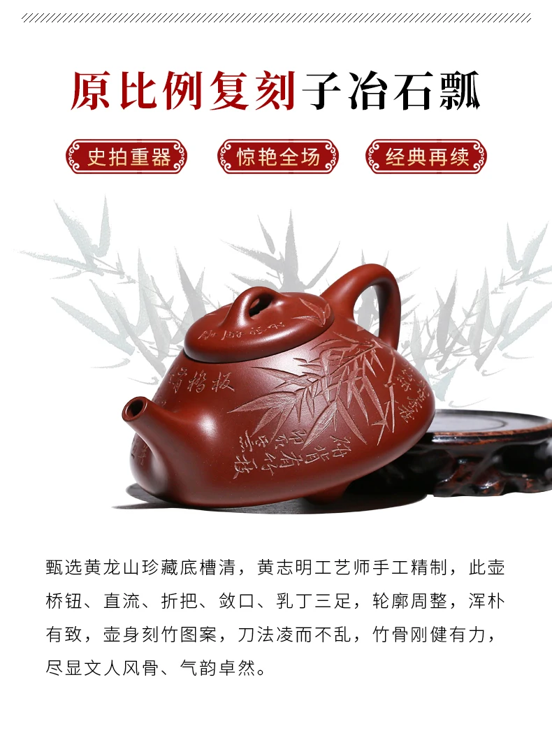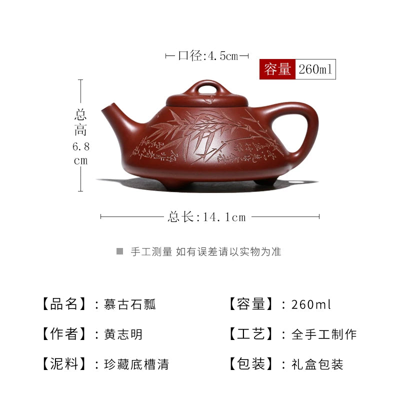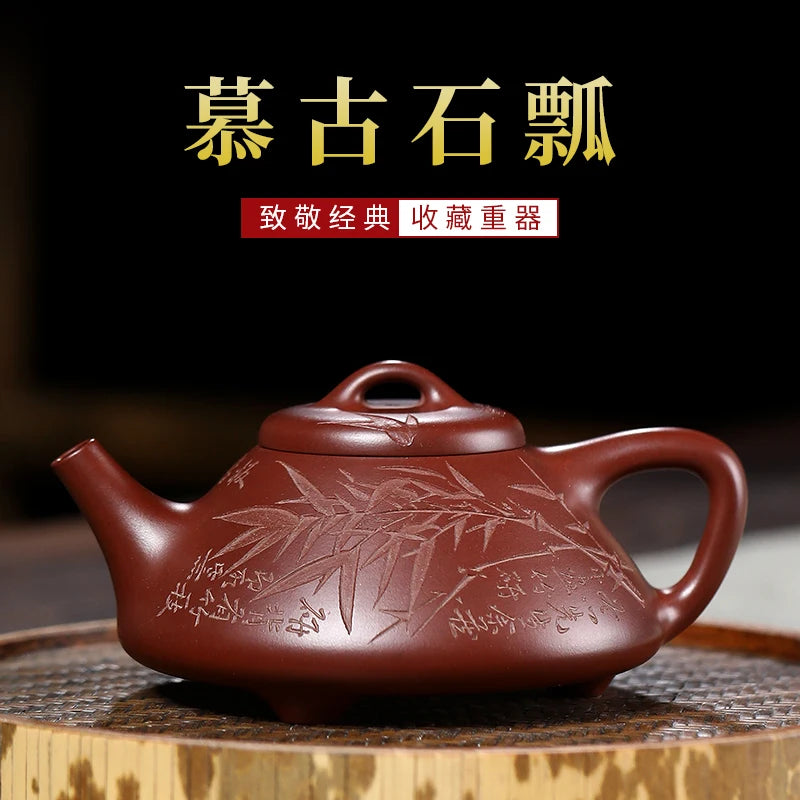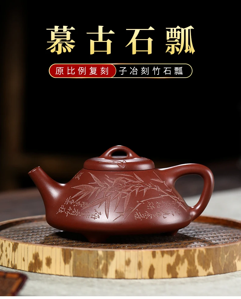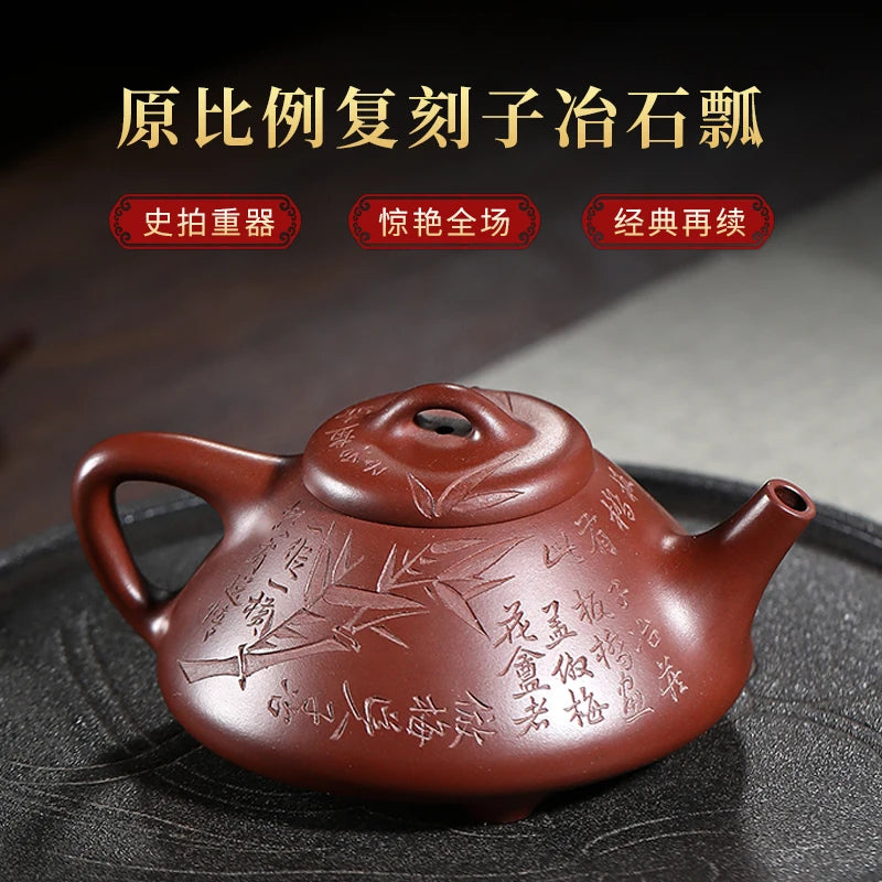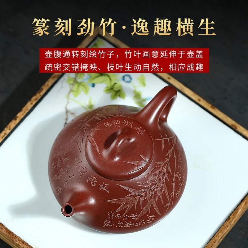 |mud yixing recommended pure manual famous teapot kung fu tea set household single pot carved bamboo stone gourd ladle