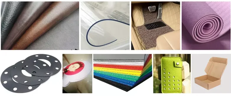Oscillating Knife Cutter is used for cutting Leather, Gasket, PP, PE, EVA, PTFE, ETFE, Carpet, Carton, Wood, MDF, PVC, Acrylic,Carboard, Rubber, Corrugated box, Foam, Leather strip, Composites, Cardboard, Corrugated board, Honeycomb paper, Plastic film,Fiber paper, Plastic box, Rebound rubber, Rubber cloth, etc.