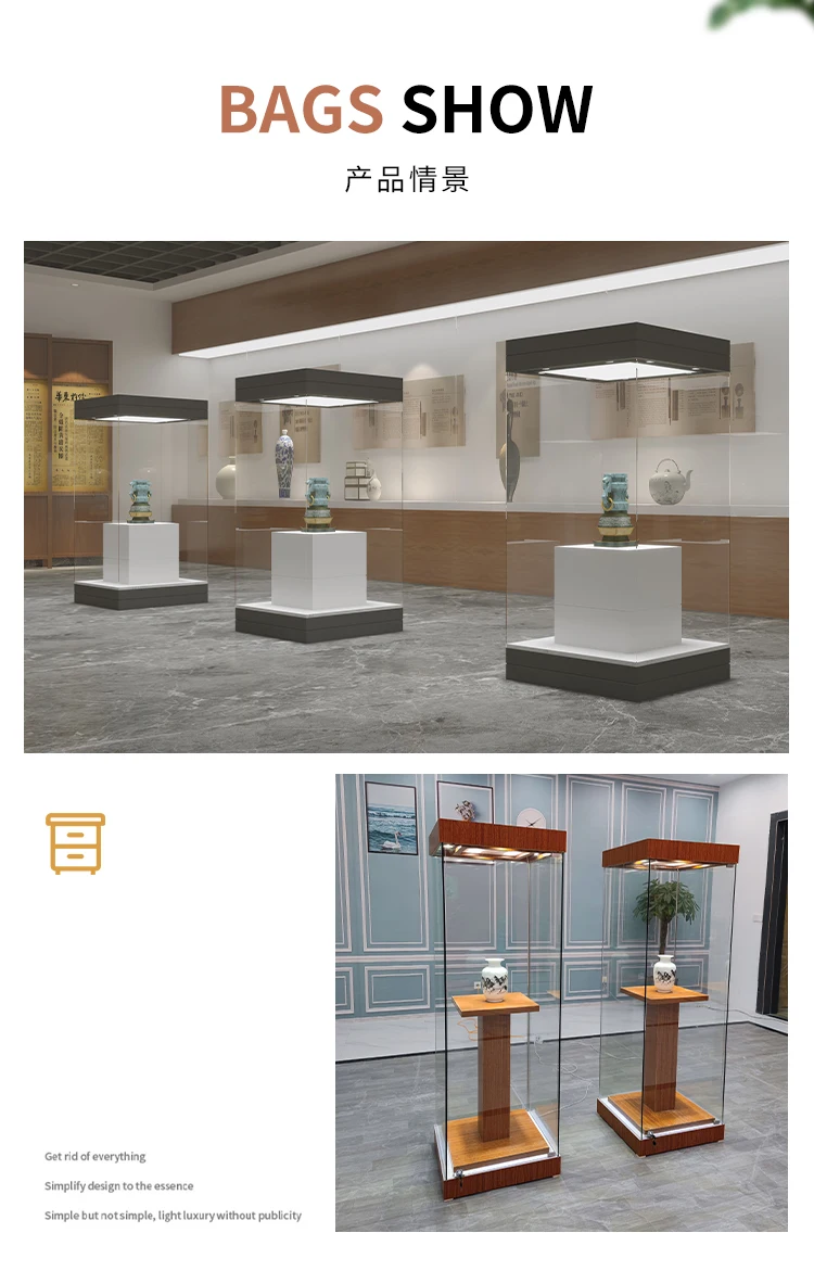Museum glass display cabinet, painted display cabinet, statue, cultural relic, solid wood display cabinet, antique display cabin